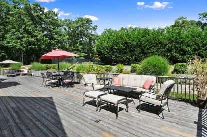 Wainscott compound features golf, tennis, and pool, basketball, bocce and a 6 Bed/6 Bath 5,500sf, 5 acre home. Located just outside Sag Harbor Village this compound is close to everything; East Hampton and Wainscott villages, ocean and bay beaches all just minutes away. The well equipped home features Modern Kitchen fully equipped, Large living room/great room, media room with flat screen TV/Blu-Ray/VCR/Cab