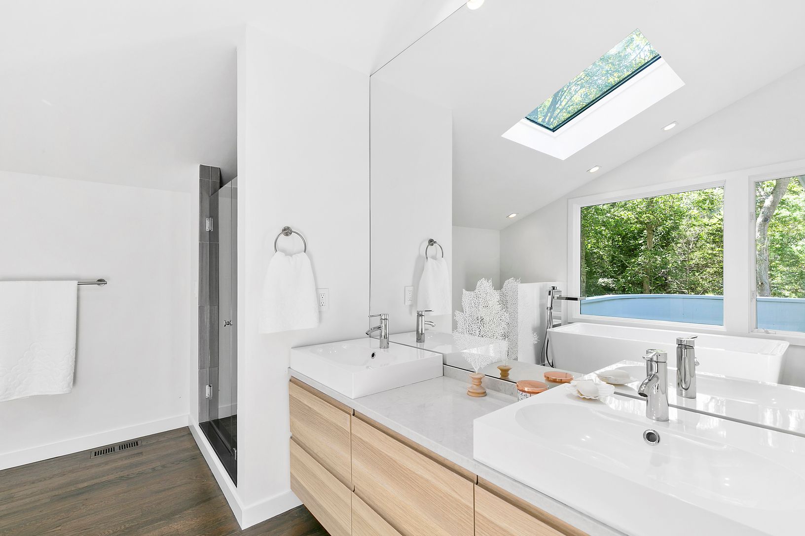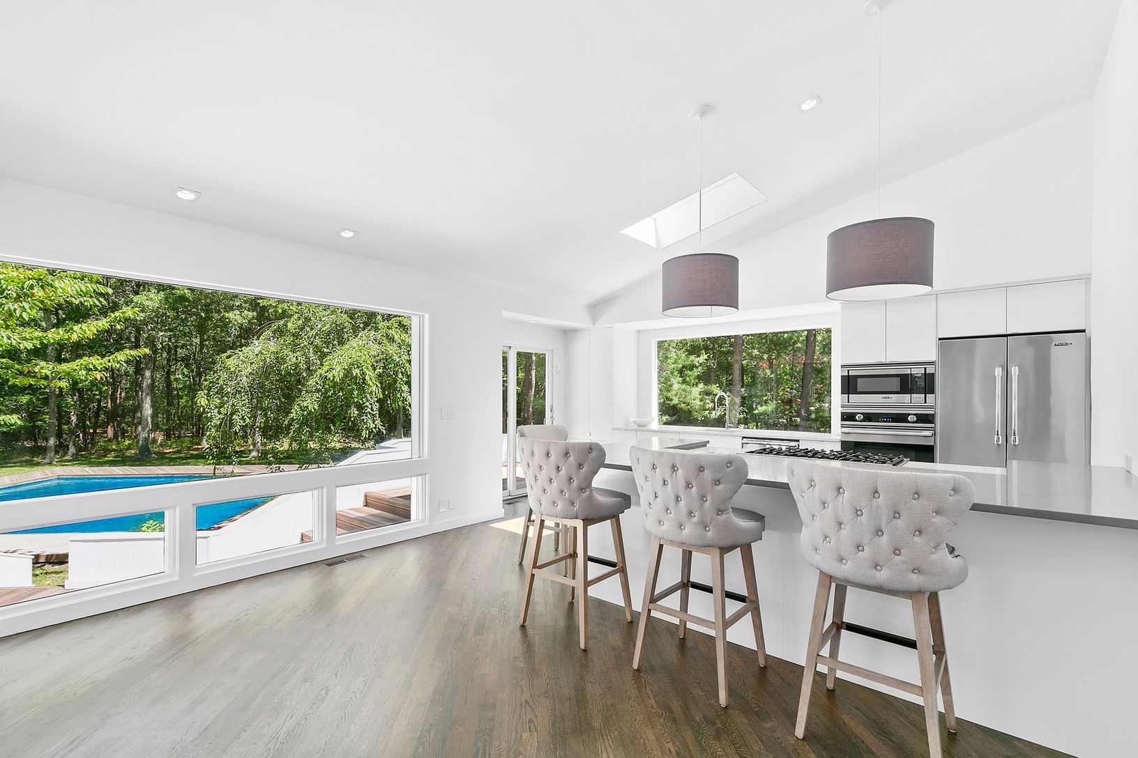Rental Registration #: 18-1838 Enjoy the tranquil and peaceful setting of this Wainscott South of the Highway contemporary. Newly renovated, and featuring over 3000 +/- sq. ft. with an open concept living space with cozy fireplace. There are four bedrooms and three baths, and a full basement with finishing possibilities. There is lush landscaping surrounding the heated pool and expansive decking. Situated on over an acre on a quiet cul-de-sac,