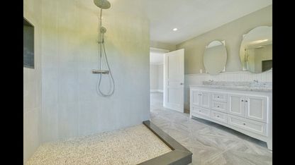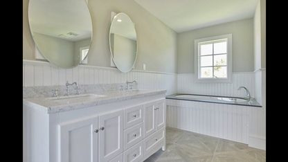 Custom built Modern/Traditional built by John Rives. This beautiful home offers an eat-in kitchen with Effeti Cucine cabinetry and Caesarstone counters. There is a formal dining room, family room with fireplace, sitting room, first level master suite, five and a half bathrooms, laundry room, and three guest en-suite bedrooms with mahogany balconies offering views of the pond. The double height ceilings and exquisite molding brings elegance to