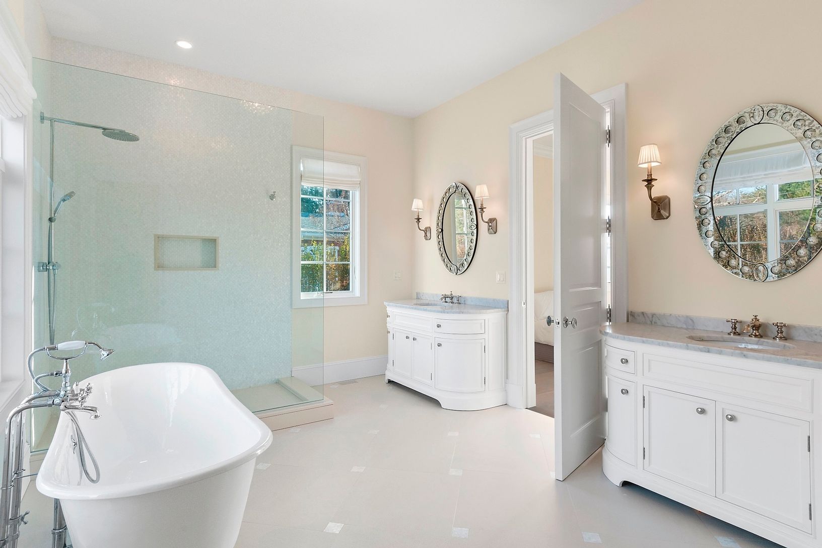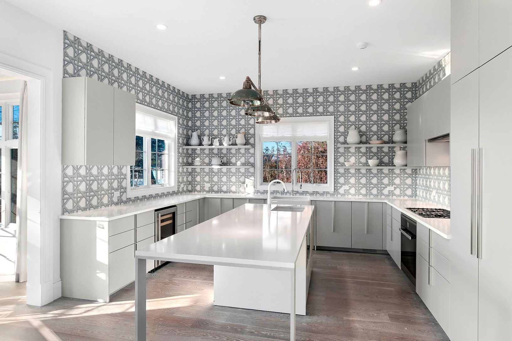 In the heart of Water Mill, on a quiet cul-de-sac, just steps from Mill Pond, this spacious, postmodern, 4000 sqft, 4 bedroom, 5.5 bath home intersects modernity and classicism with style and elegance. Custom built by John Rives in 2014, with interiors by Guillaume Gentet, the fluid open spaces compliment modern living, while the traditional details offer warmth and comfort. The light filled, double height foyer sets the pace for the first lev
