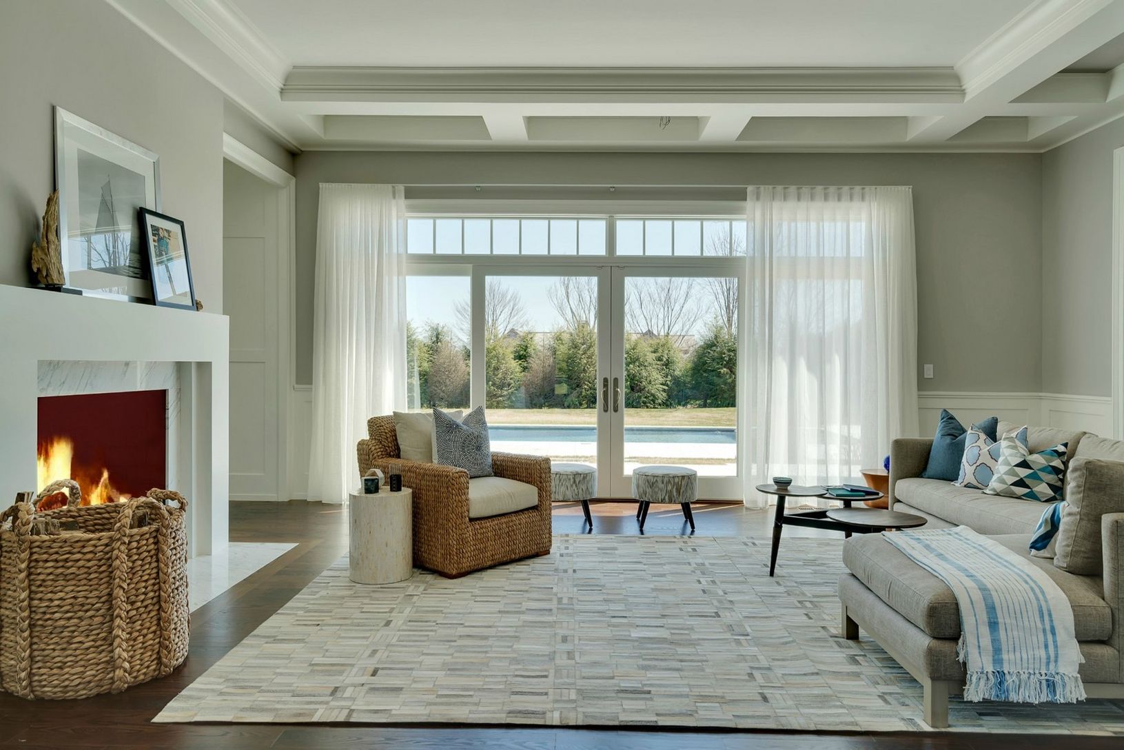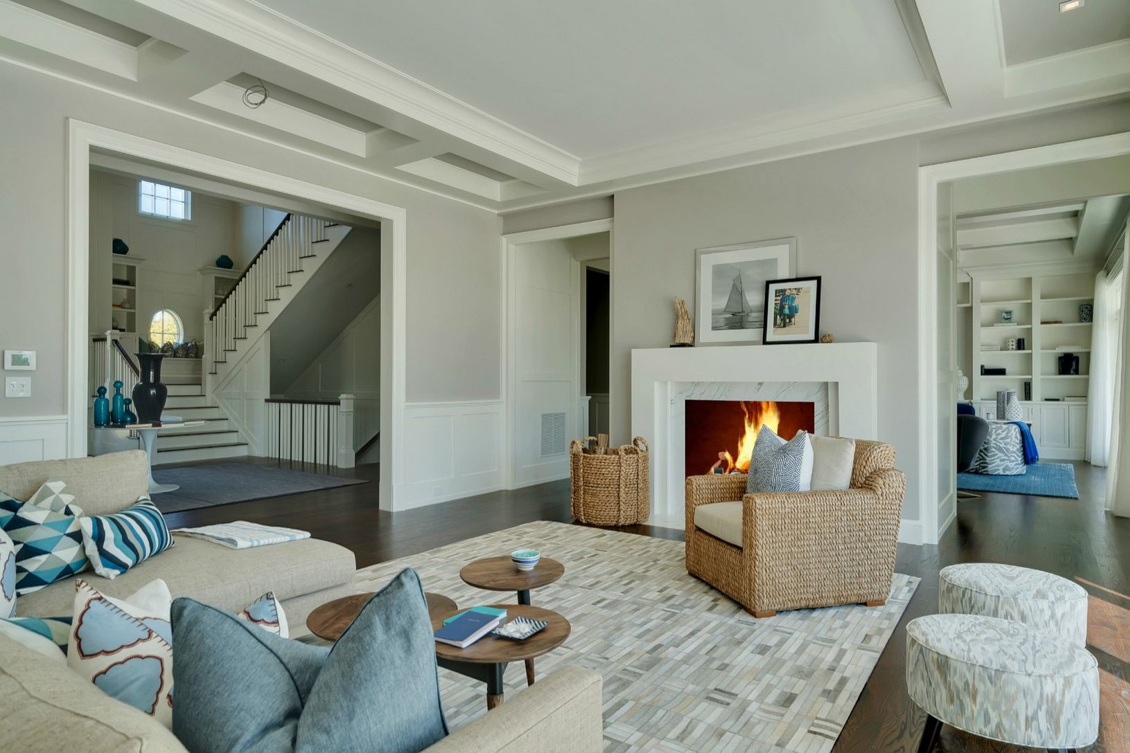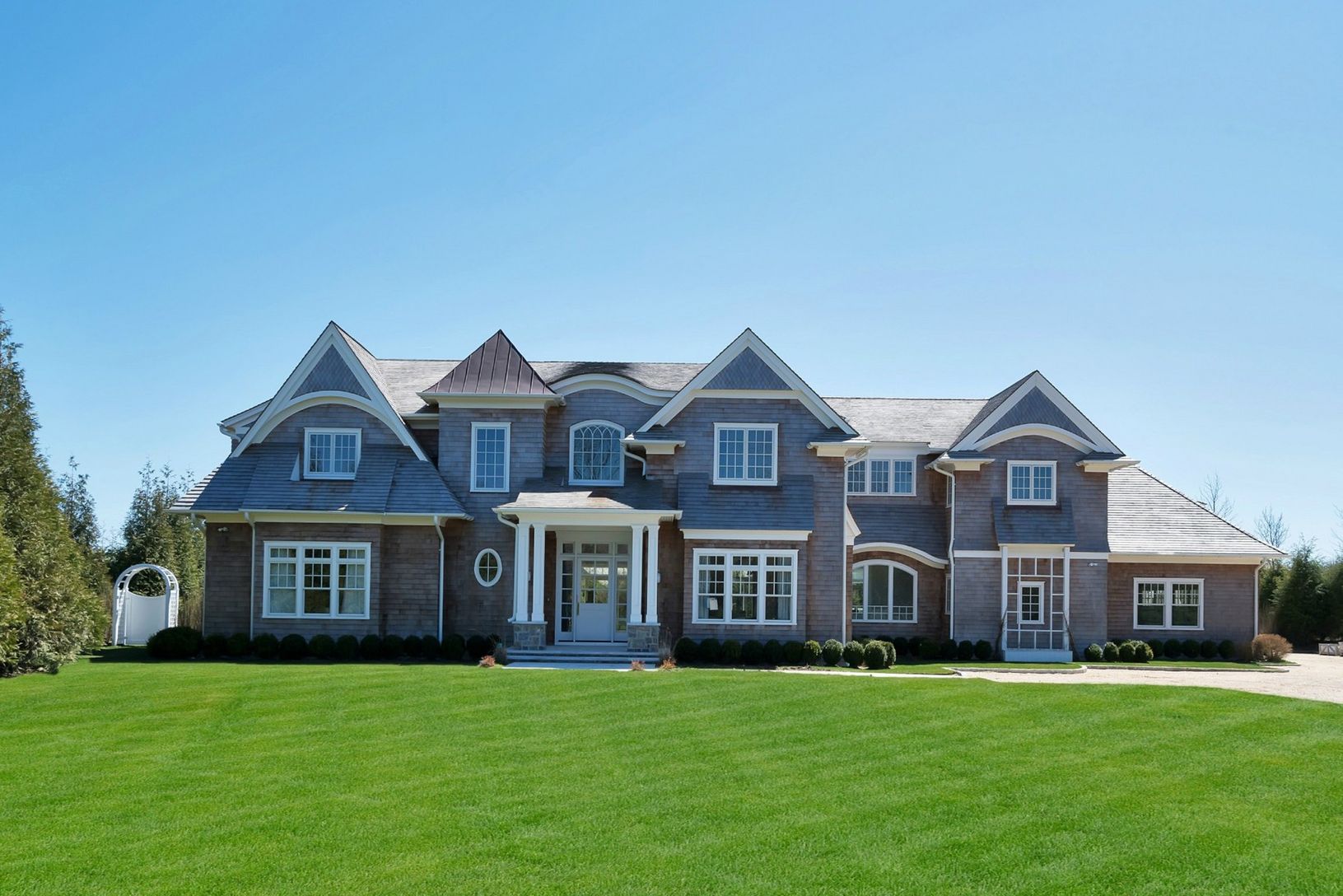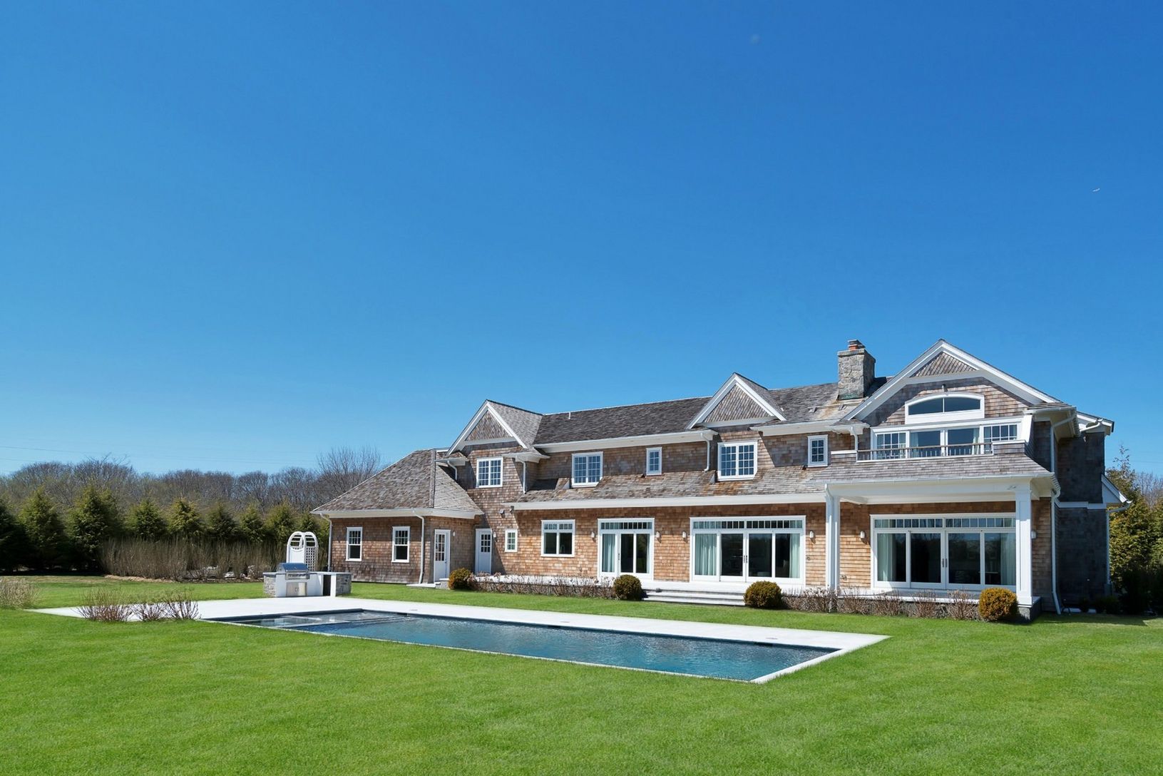 In Water Mill's bucolic horse country, this gracefully gabled new construction traditional home, with elegant finishes throughout, offers 7,000+/- sq. ft. of living just minutes to Southampton Village, Sag Harbor and Bridgehampton. Enter from the stately, columned porch to a soaring double-height sunlight-filled foyer. First floor interiors are open, spacious, and ideal for entertaining, with paneled wainscoting, coffered ceilings and rear wal