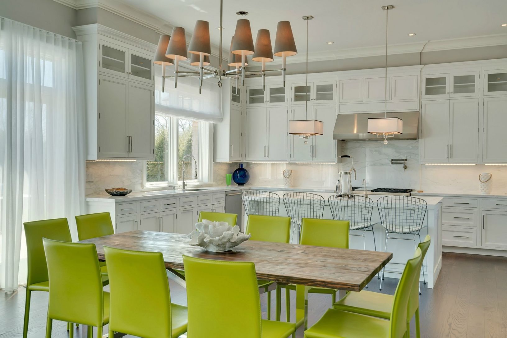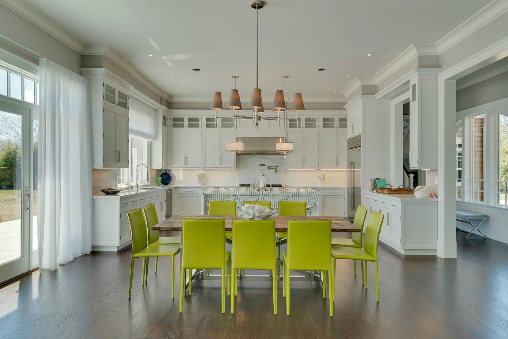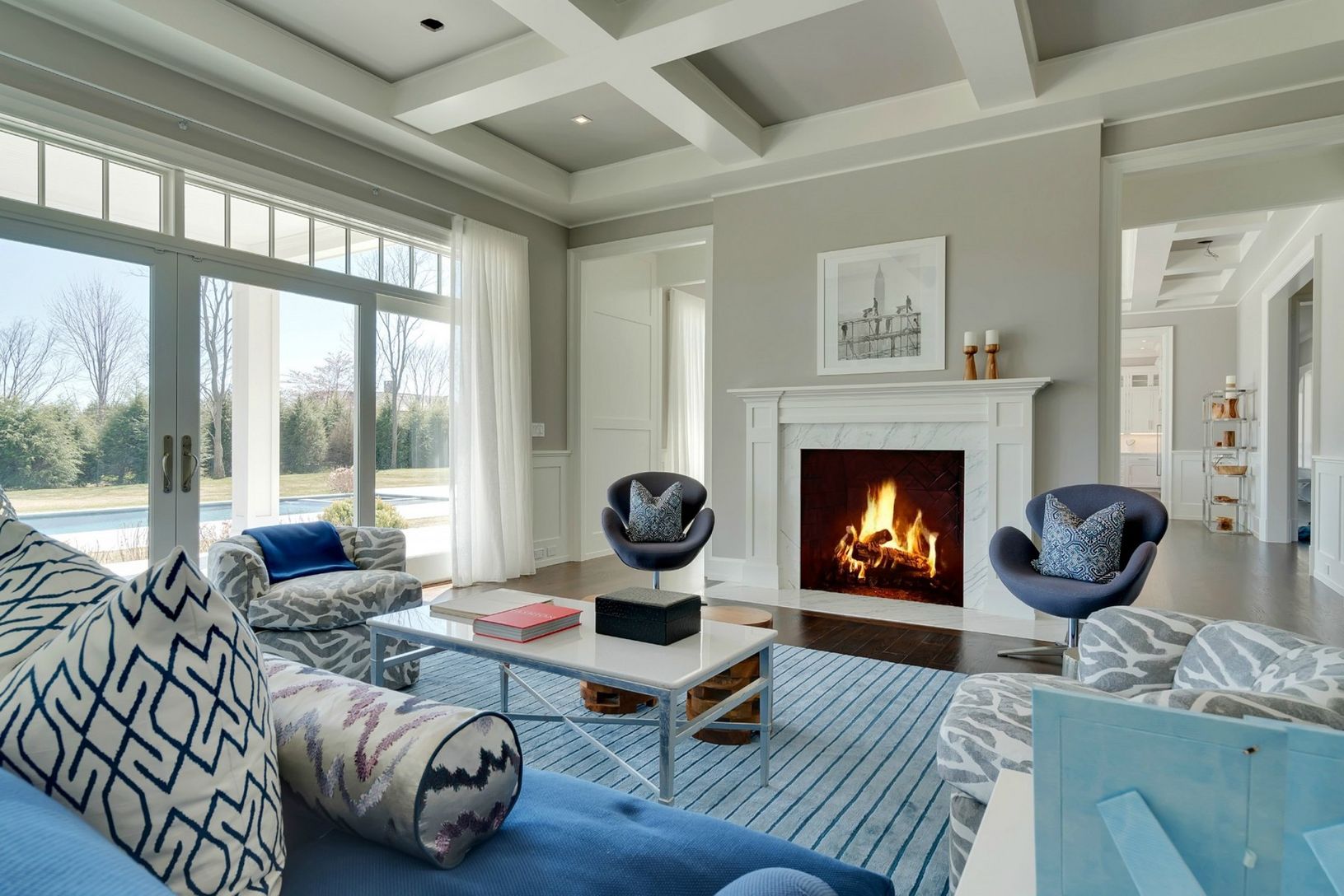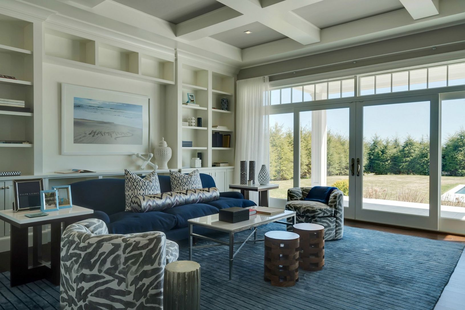 In Water Mill's bucolic horse country, this gracefully gabled new construction traditional home, with elegant finishes throughout, offers 7,000+/- sq. ft. of living just minutes to Southampton Village, Sag Harbor and Bridgehampton. Enter from the stately, columned porch to a soaring double-height sunlight-filled foyer. First floor interiors are open, spacious, and ideal for entertaining, with paneled wainscoting, coffered ceilings and rear wal