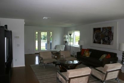 This Water Mill South of the Highway five bedroom offers stunning waterviews of Mecox Bay. There are three bedrooms upstairs and two bedrooms downstairs. The home offers expansive entertaining spaces both inside and outside. It's located just 1/4 mile from Flying Point beach and close to the village. There is extensive decking and a private heated pool with pool house.