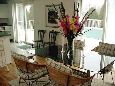 Handsome two-story post modern on a landscaped acre features a gracious living room with double-height ceiling and fireplace; dining area, large kitchen, three bedrooms and two baths. Amenities include central air-conditioning, hardwood floors, deck, semi-circular driveway and a sparkling 20'x40' heated swimming pool. This property is no longer available. Call our office for others!