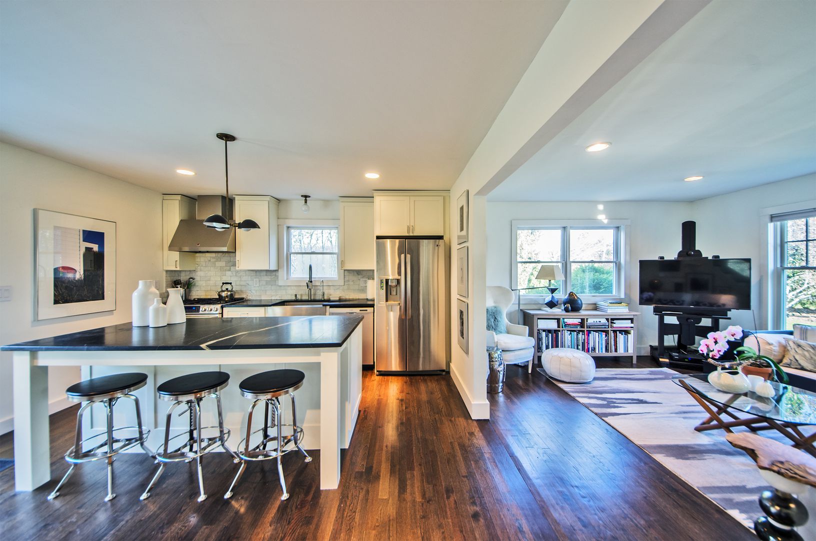 Water Mill. Enjoy the summer lounging by the pool at this Chic Water Mill home. 1st time offered for rent, this beautifully decorated home offers 3 bedrooms, including a spacious 2nd floor master suite, 2 and 1/2 full baths, open floor plan ideal for entertaining, newly renovated chefs kitchen with French doors to the deck and formal dining room. Outdoors enjoy the spacious property featuring a sunny pool, fire pit and patio dining area, all p