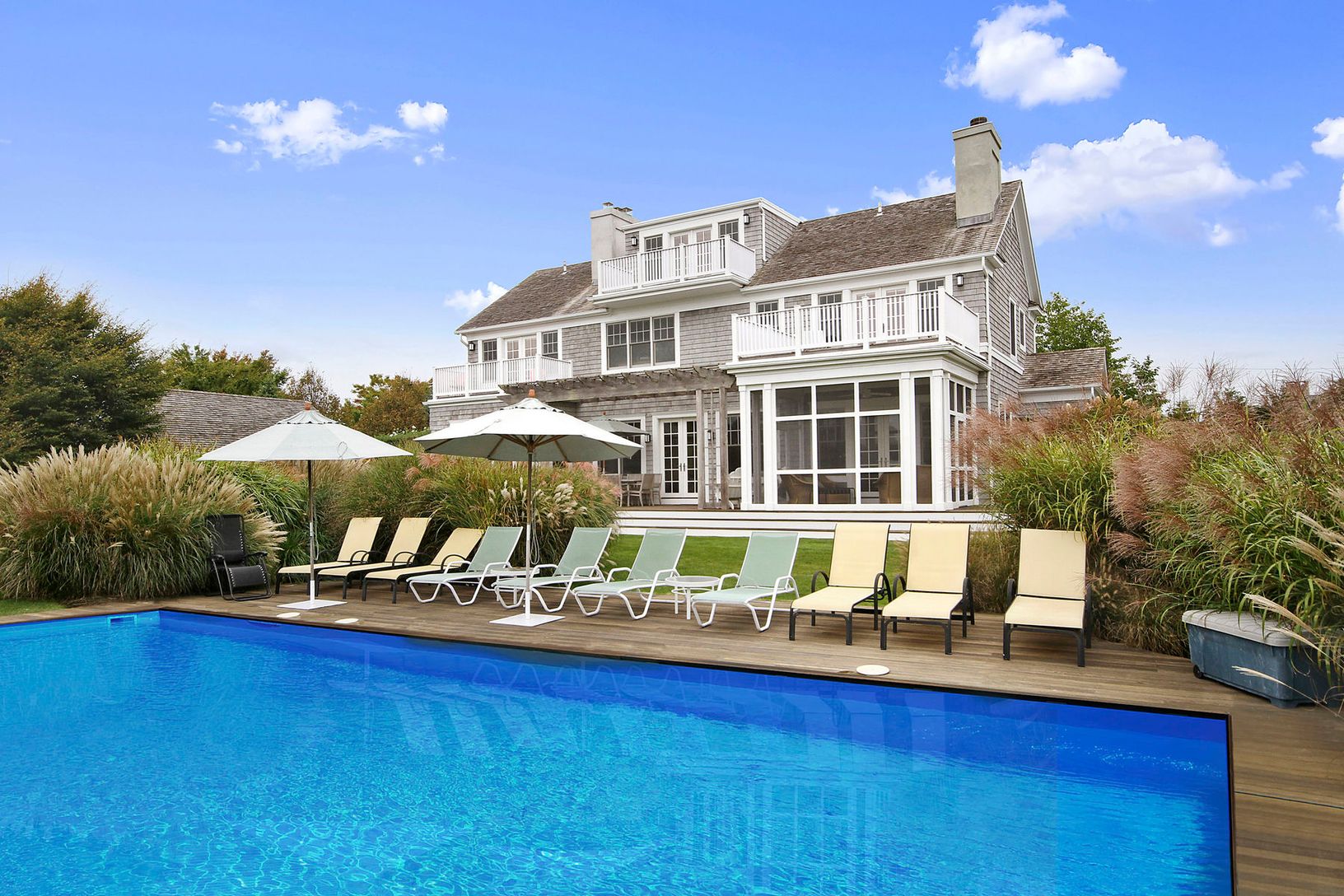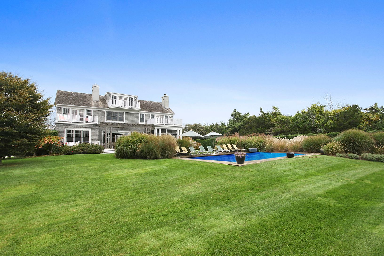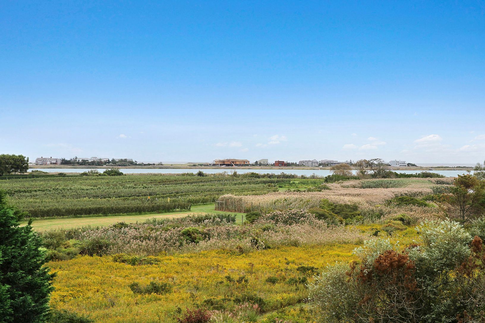 Farm and water views over Mecox Bay and the ocean beyond make this home a number one destination for South- of- the- Highway living. There are four bedrooms, three and one half baths, library, third floor sitting room with panoramic views, screened in porch and heated gunite pool - all enveloped in mature professional landscaping. In addition, extensive decking, a separate garage and an adjacent reserve. This is a first offering and priced to