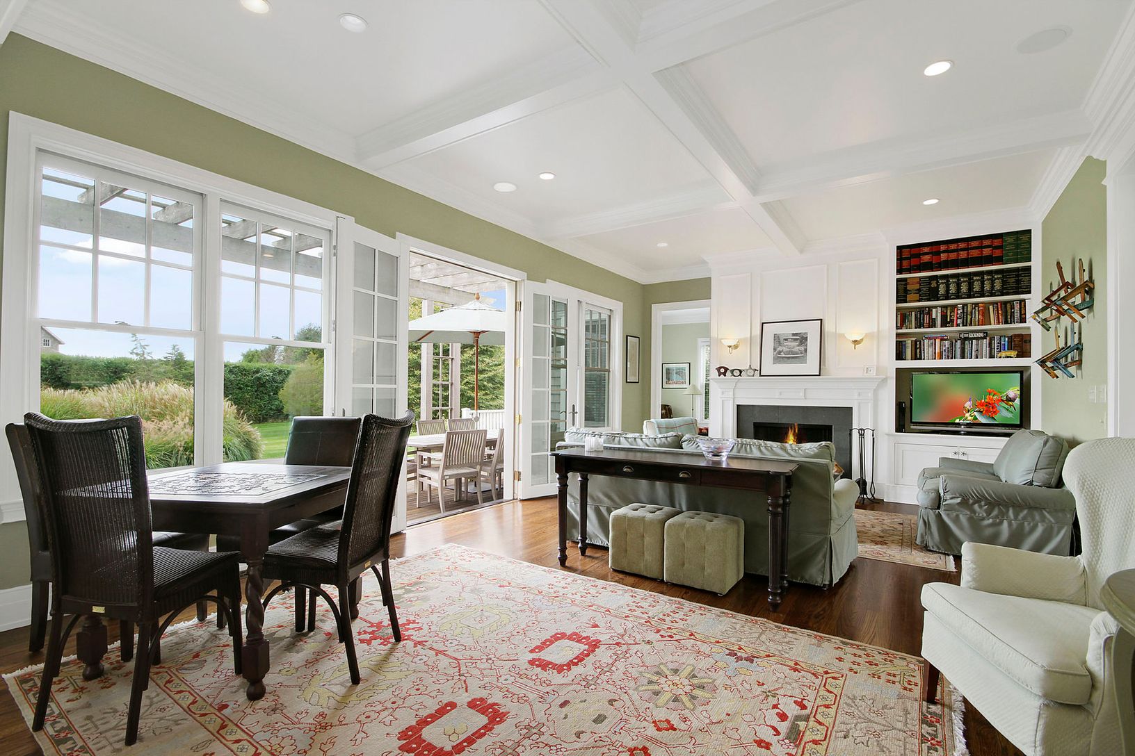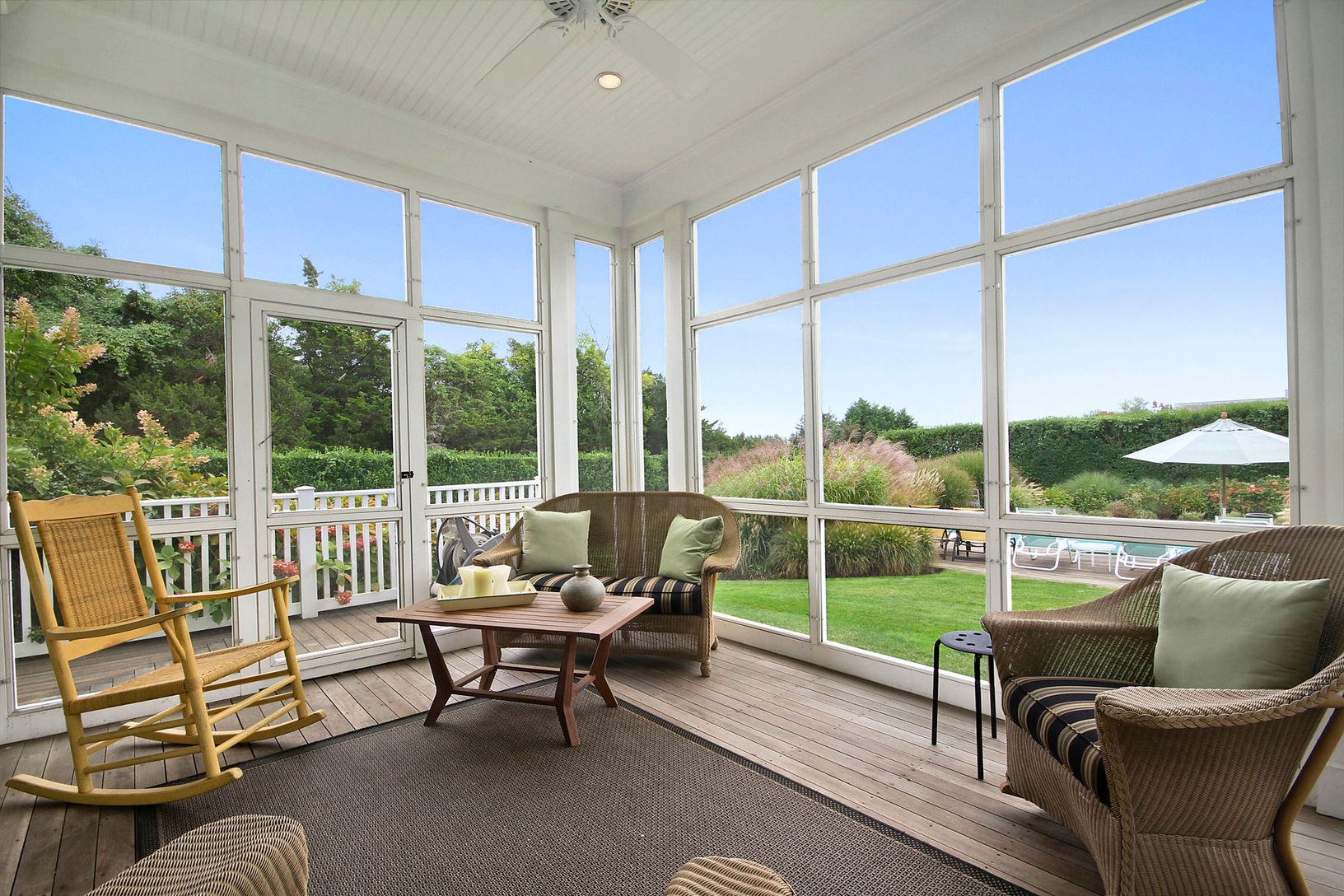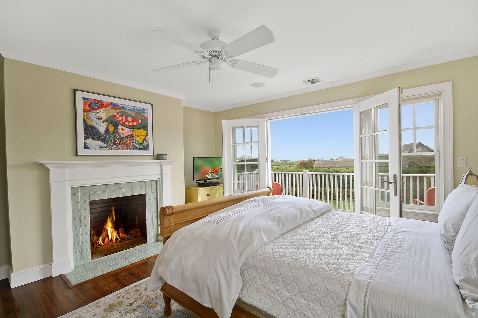 Farm and water views over Mecox Bay and the ocean beyond make this home a number one destination for South- of- the- Highway living. There are four bedrooms, three and one half baths, library, third floor sitting room with panoramic views, screened in porch and heated gunite pool - all enveloped in mature professional landscaping. In addition, extensive decking, a separate garage and an adjacent reserve. This is a first offering and priced to