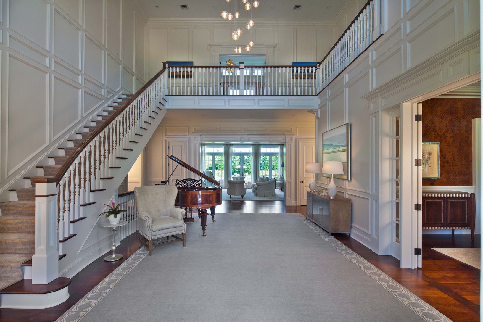 Overlooking 34 magnificent acres of reserve, this Water Mill south manor features elegant living spaces and endless amenities in a premier Hamptons location. Minutes to the ocean and Mecox Bay, the immaculate 1.5+/- acre estate encompassed by privet hedge is accessed through a private gated entry. Perfectly appointed, the 8,600+/- sf residence begins with a double-height foyer leading to an elegant formal living room with fireplace, coffered c