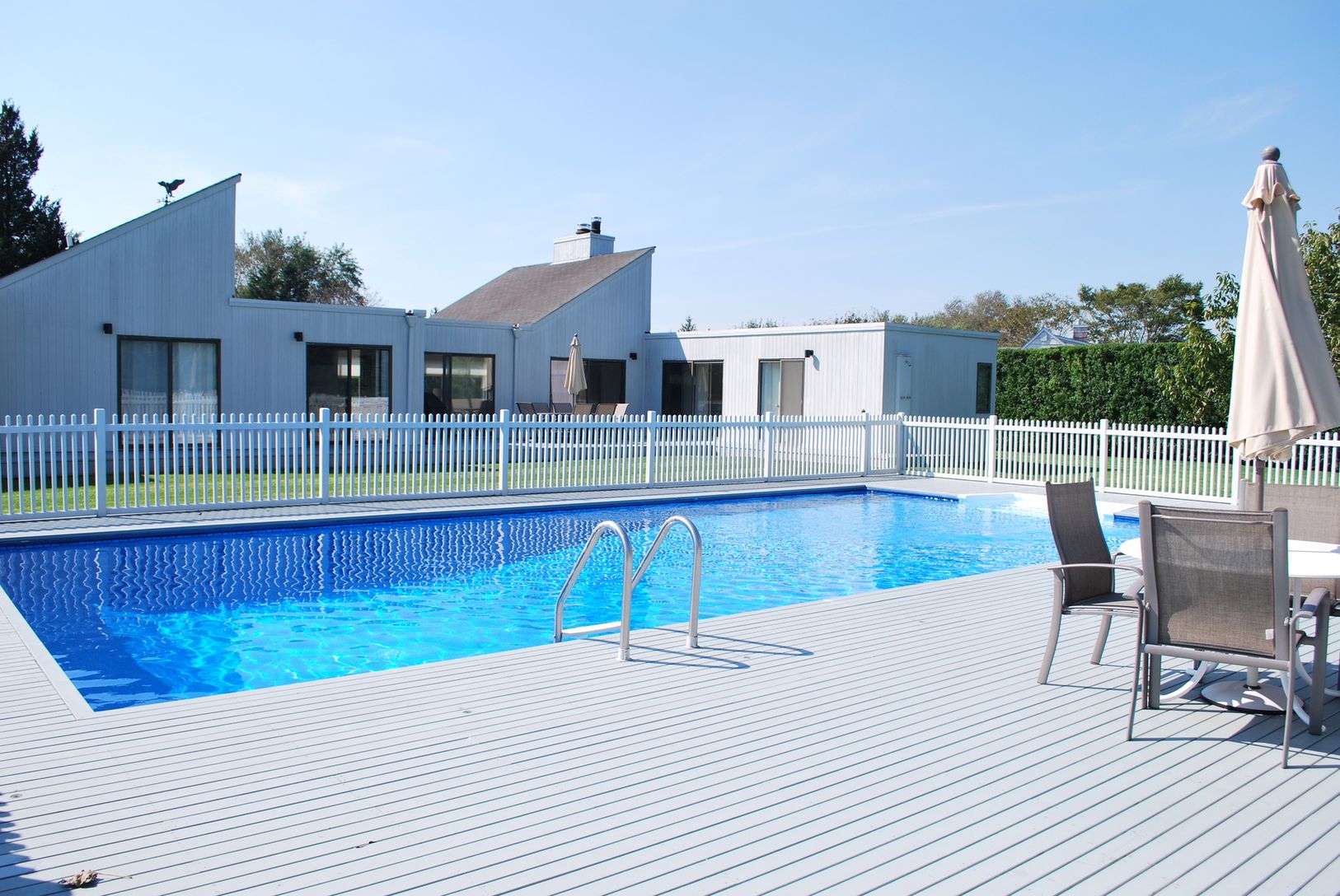 Off Newlight Lane in Water Mill South this contemporary is in move in condition and offer one story living. 4 bedrooms with a newly renovated master bath, high ceilings and open flow. Plenty of lawn and the seasoned landscaping includes large established trees giving great privacy. Fenced pool with great decking and outdoor shower. Room to expand. Wonderful location and close to both villages of Bridgehampton and Water Mill. Minutes to great f