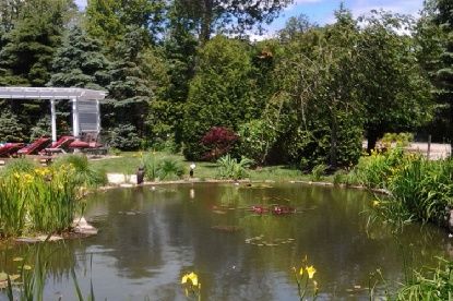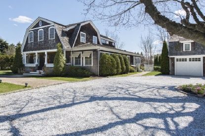 This farmhouse was redone in 2005 as a true Hamptons shingled-style home. It has four bedrooms and four and one-half baths in the main house. There is a studio and full bath apartment above the three-car garage. This home features its own pond with waterfalls, and a heated gunite pool. It has tennis and three fireplaces as well.