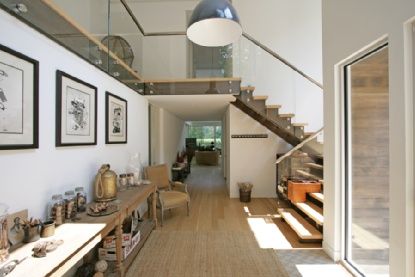 This elegant and sophisticated two-story modern on 2 +/- manicured acres bordering a reserve features the finest finishes including wide-plank select white oak floors, floating staircase with glass panels, white lacquer cabinetry, floor to ceiling single pane glass panels and the best in modern design. Loft-like living spaces include soaring ceiling in living/dining area with sleek stone fireplace leading to wrap terrace and loggia. Also