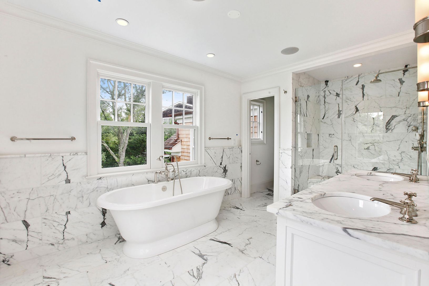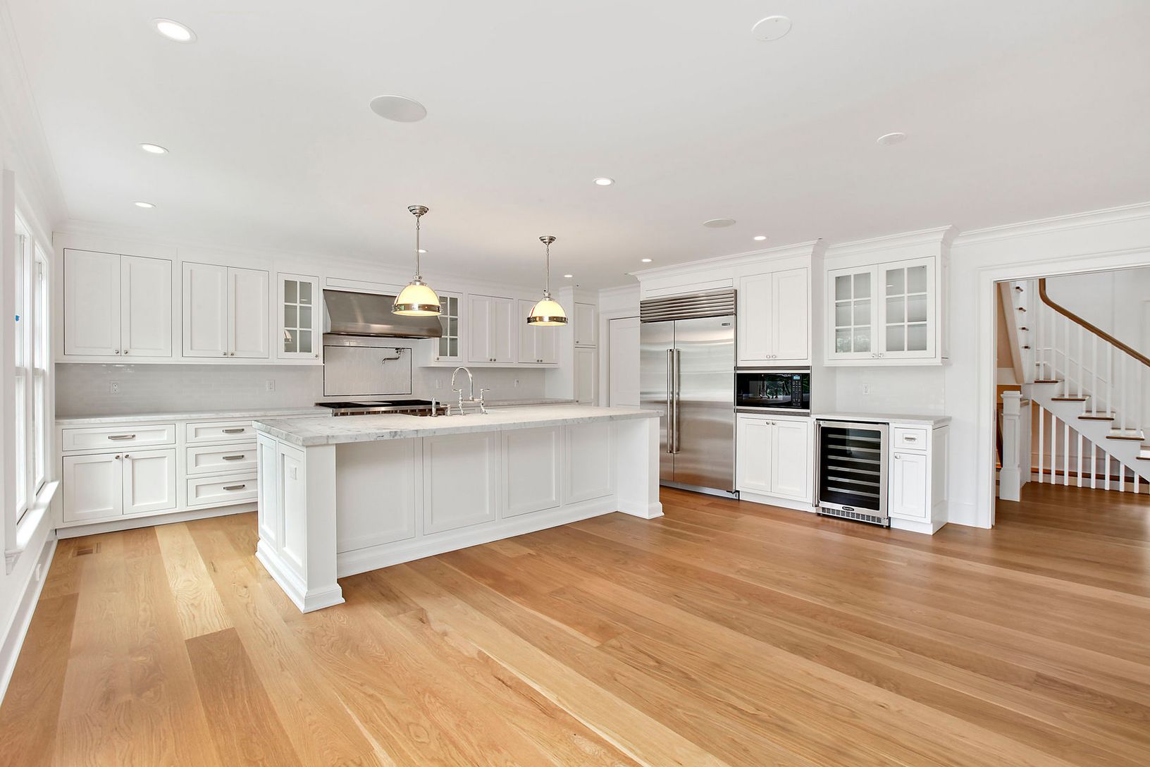 Finishing touches were just completed on this West Mecox 4200 sq. ft. custom built Traditional home with deeded dock access to Mecox Bay. The 5 bedroom, 5.5 bath layout features beautiful 8' white oak flooring, custom paneling, a grand foyer and multiple living spaces. Highlights include a gracious master suite with luxurious marble bath, fireplace, and private balcony. The professional quality kitchen is outfitted with marble counters, furn