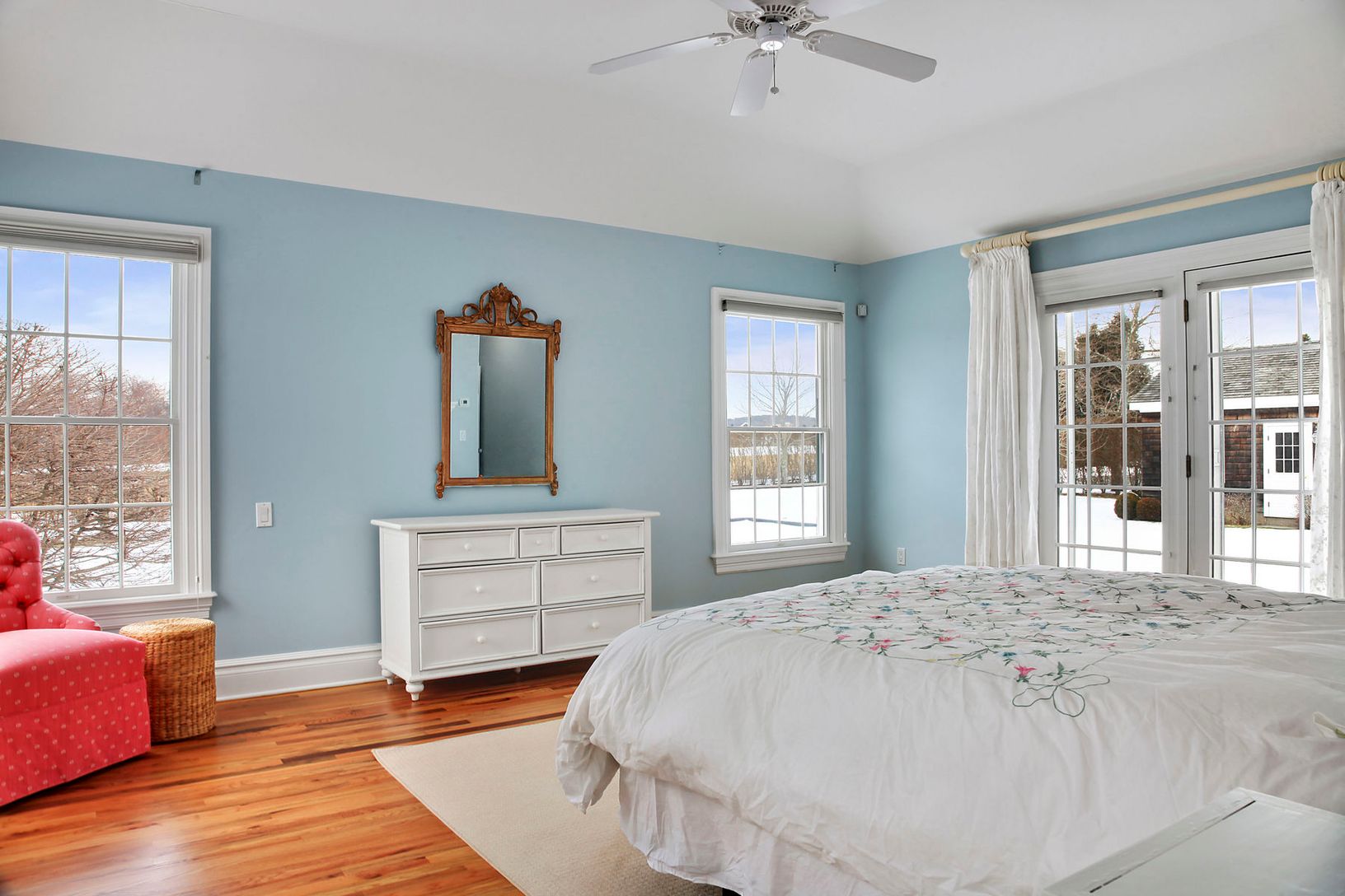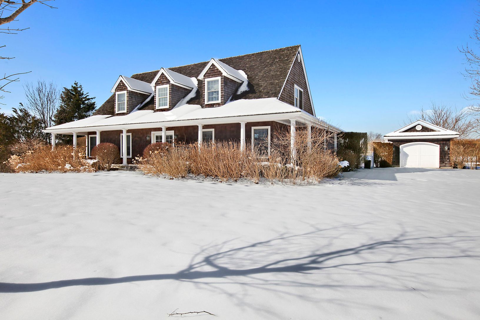 Set on a private, shy acre at the end of a quiet cul-de-sac, this 4 bedroom, 4 bath shingled Traditional with welcoming wrap around porch, features open kitchen with granite countertops, great room with soaring ceiling, fireplace, and French doors with clerestory windows designed to capture the farm field views beyond. First floor master suite with French doors opens to the manicured grounds, first floor guest room, and sunroom. Two spacious