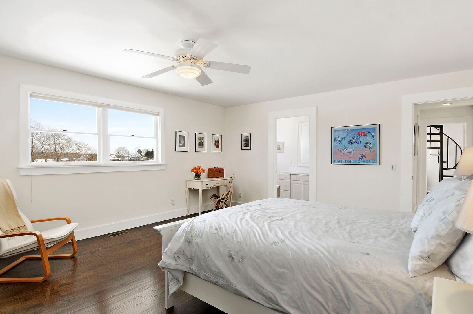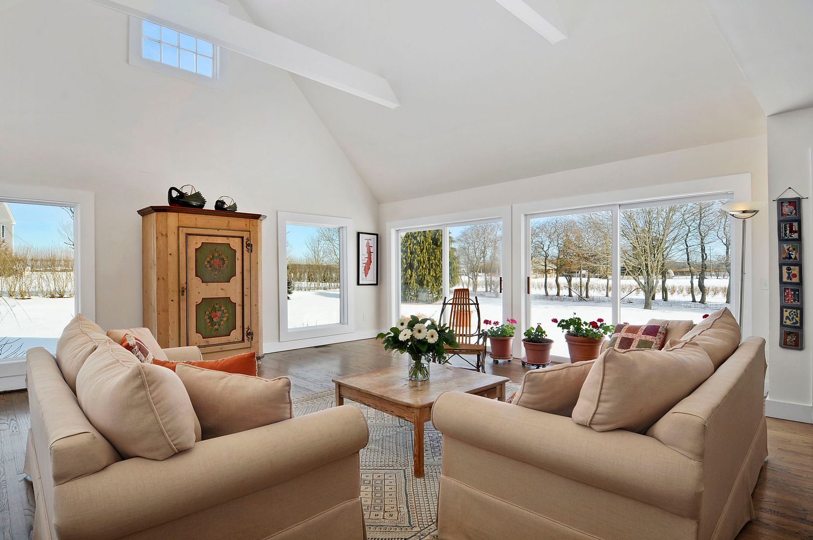Stylishly renovated, modern, light-filled country home on 1.3+/- acres offering room for gracious entertaining with a great room, an inviting kitchen with new stainless appliances, dining and living rooms, and a main floor guest bedroom. Second level features master suite,two guest bedrooms and a den/office. Surrounded by natural gardens, and wide open farmfield views. Private, fenced heated pool all in a desirable Water Mill setting close t