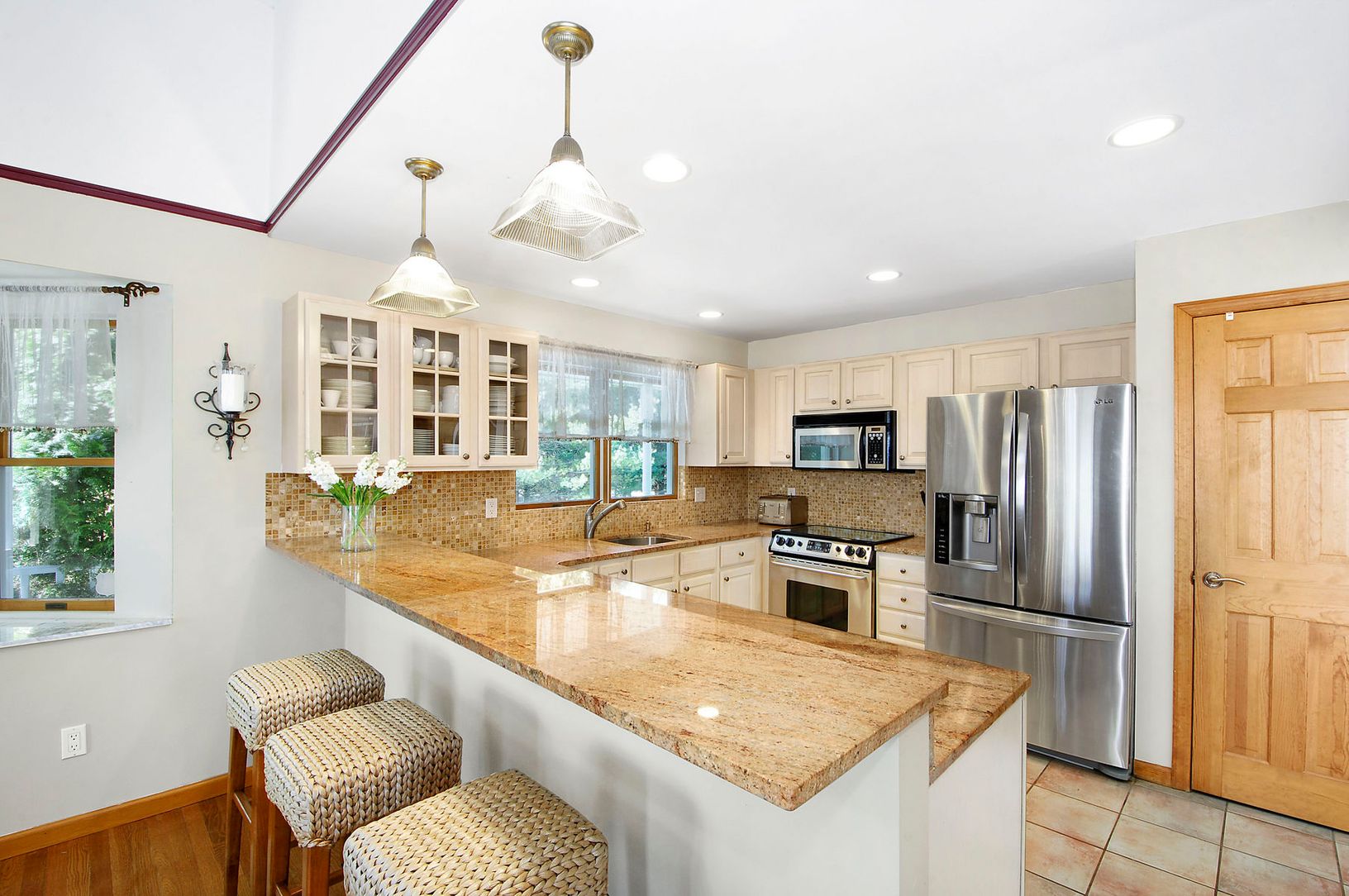 Overlooking 50 ± acres of agricultural reserve in peaceful Water Mill North, this 4 bedroom, 3 bath shingled home on 1.2 ± acres maximizes natural light and scenic beauty with a soaring great room complete with wet bar, sun room, and screened-in porch. Off the great room, the marble kitchen with bar seating opens to the dining room with lofty gambrel ceiling and sun room. The spacious family room leads to the screened porch, broad dining deck