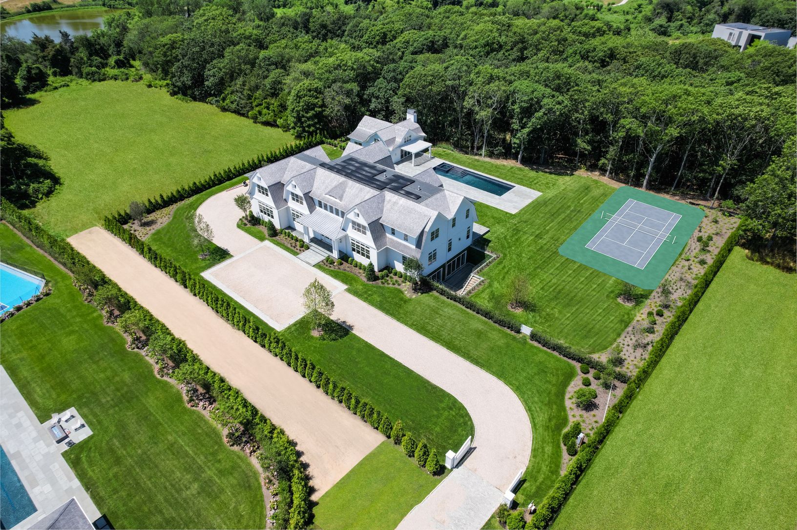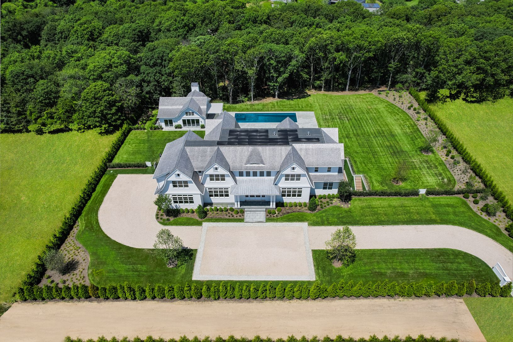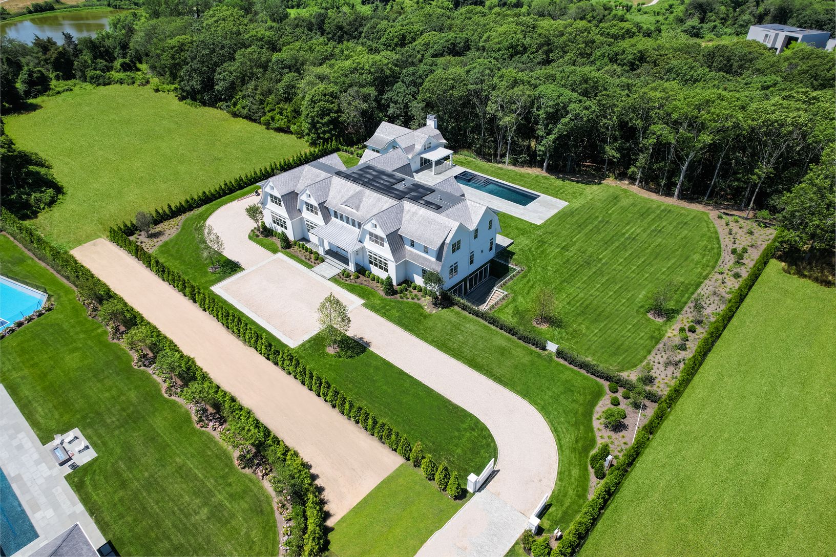 Situated in one of the most prestigious areas in the Hamptons, this impeccably crafted, 14479 +/- sq. ft. white shingle quintessential Hamptons Transitional Style residence features eight bedrooms, ten and one-half baths is now completed. This new construction luxury retreat sits on a private 2.514 +/- acre flag lot property over 350ft from Scuttle Hole Rd in the center of it all - just moments from Bridgehampton Town, the Hampton Classic, Two
