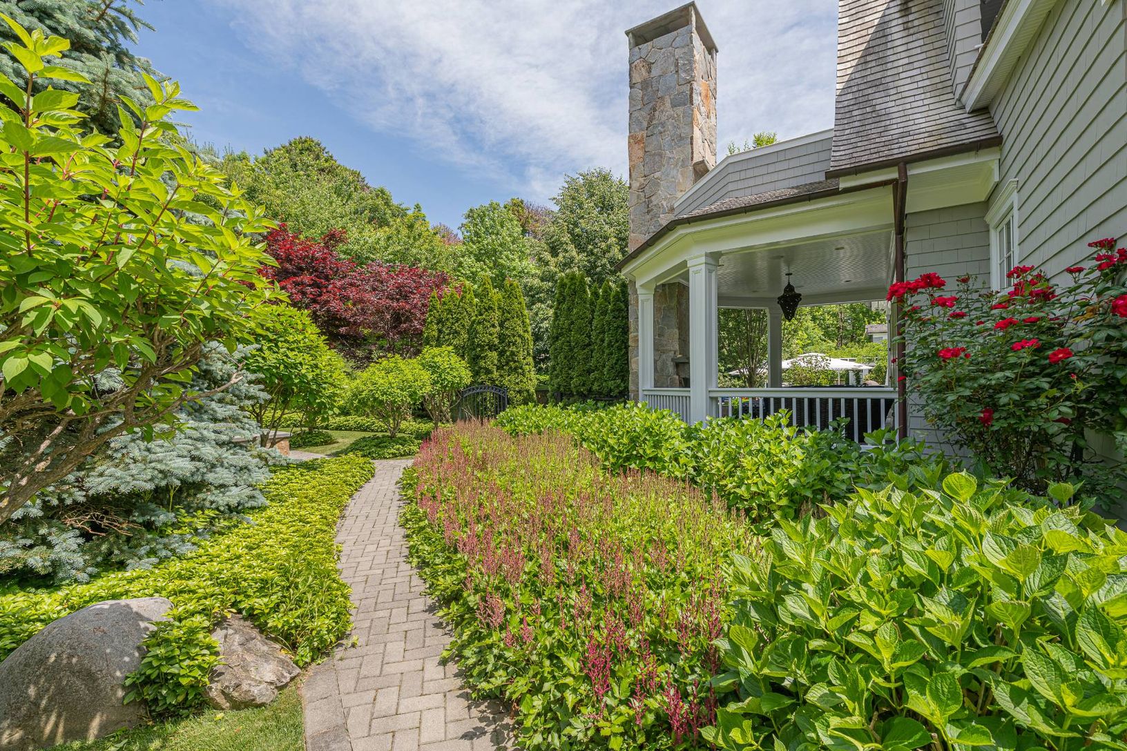 This estate redefines functional luxury as an ideal year-round retreat for life, work, and play. Tucked beyond the gated entry, along a winding tree-lined drive and sited on 4.6+/- acres atop a private knoll is a stately 22,000+/- sq. ft. gambrel home. Expertly designed to accommodate with 13 bedrooms, 15 full baths, 4 partial baths, on 3 levels, with a dedicated live-in service wing and a guest house. Through a double-height entrance are musi