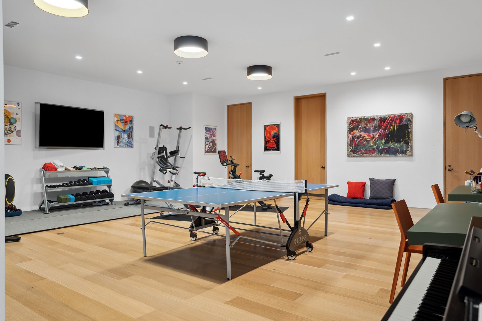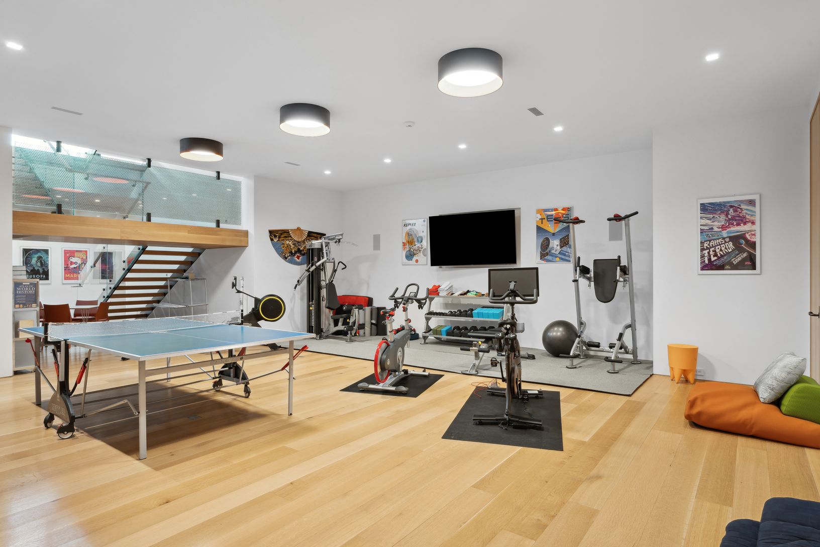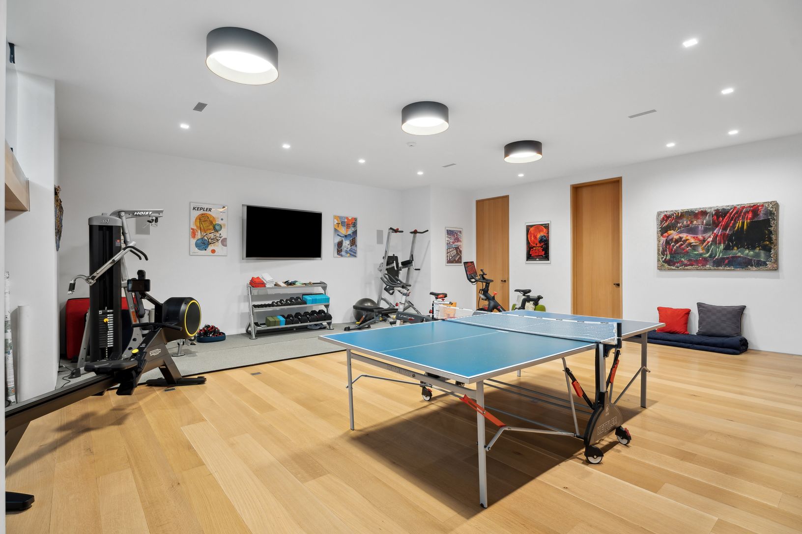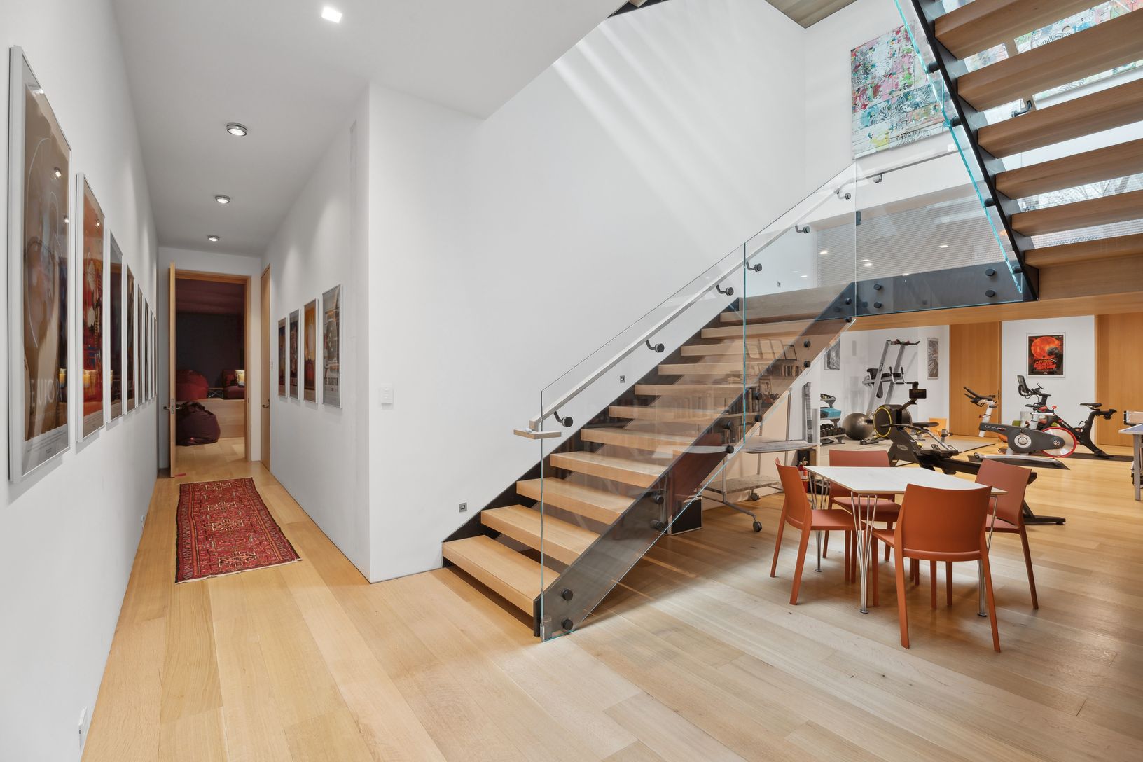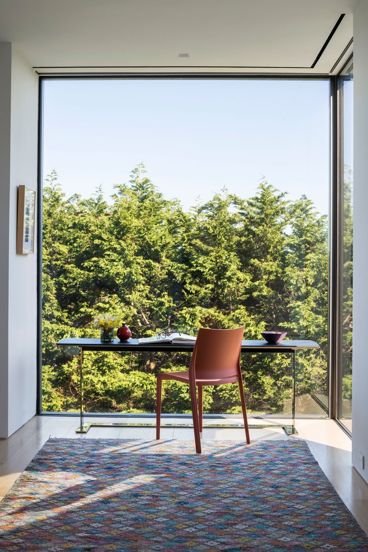 This Water Mill south pristine Contemporary will impress with its clean lines and visually intriguing sensibilities. The 5 Bedrooms, 6.5 Bath home on one acre with gorgeous double height foyer welcomes with, custom lighting fixtures, natural light and open stairway. Tasteful details, radiant floors, top of the line custom matt glass and solid oak kitchen with an abundance of Gaggenau and Subzero appliances, depict a progressive aesthetic and s