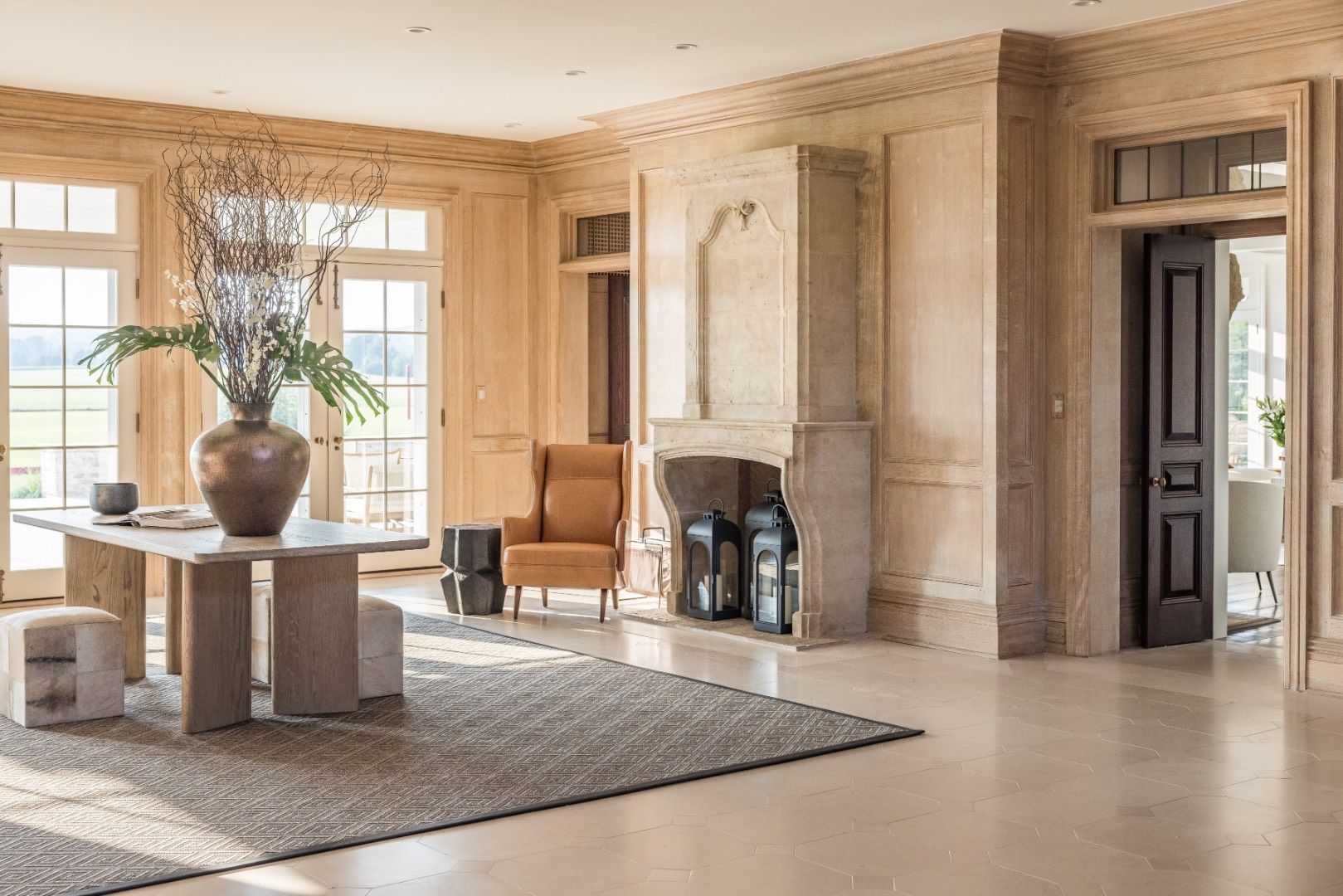 Located in Water Mill North, this magnificent handcrafted European estate is sited on 42 +/- acres and surrounded by vast farm field reserves. Designed and built by esteemed builder Jeffrey Colle, the house is completely custom with the finest materials and details throughout. The 18,000 +/- square foot estate encompasses seven bedrooms and seven and one half baths, with open views and spacious rooms on every level. The state-of-the-art chef's