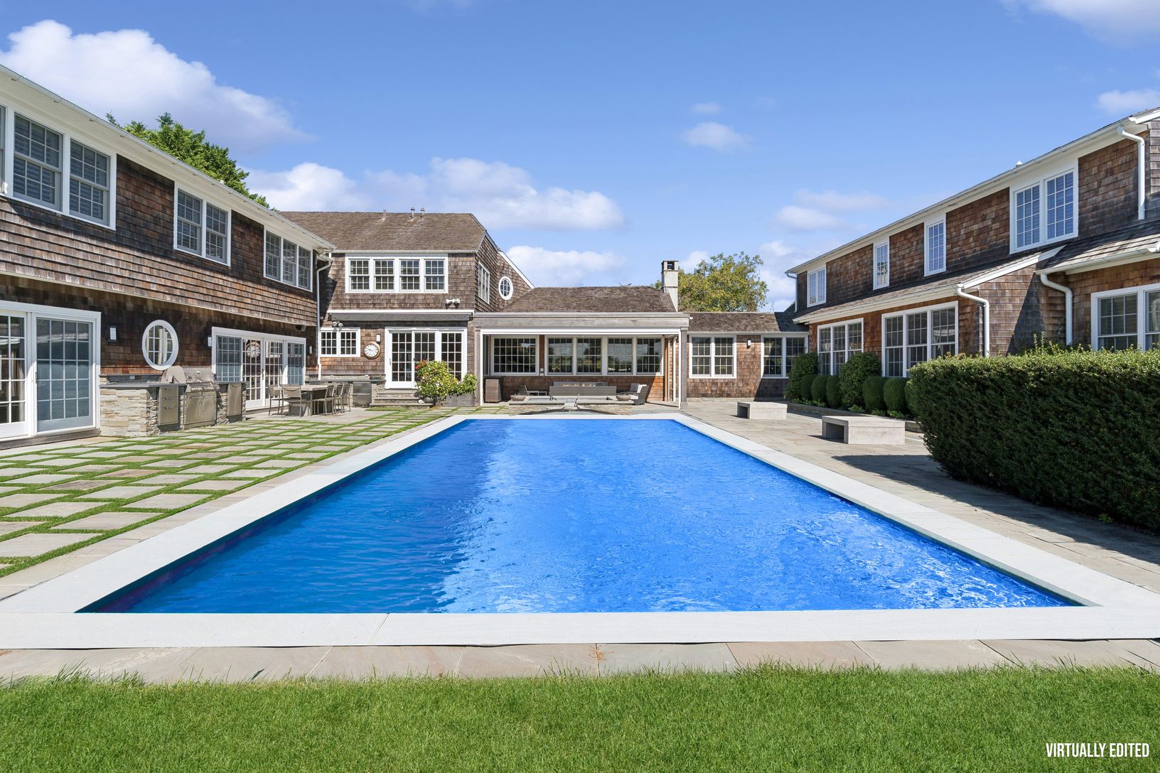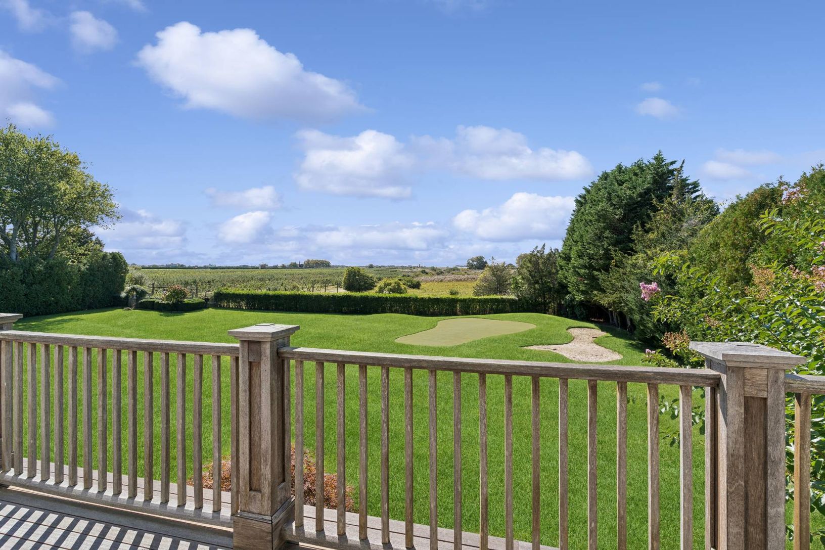 Bordering a breathtaking 45-acre farm reserve with distant views of the ocean and bay, this one-of-a-kind Hamptons estate offers a rare combination of grandeur, privacy, and modern luxury. A gated, circular drive leads to the stunning 8,500± square foot shingle-style residence, elegantly composed of west and east wings. Every inch of this meticulously designed home exudes craftsmanship, from the custom millwork and cabinetry to the seamless bl