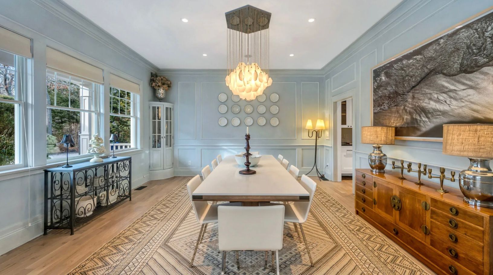 Designed for refined comfort and effortless entertaining, this fully furnished six-bedroom estate offers an elevated rental experience with exceptional space and privacy. Thoughtfully laid out with a first-floor primary suite and a total of seven and a half bathrooms, the home seamlessly blends functionality with understated luxury—ideal for hosting family and guests with ease.