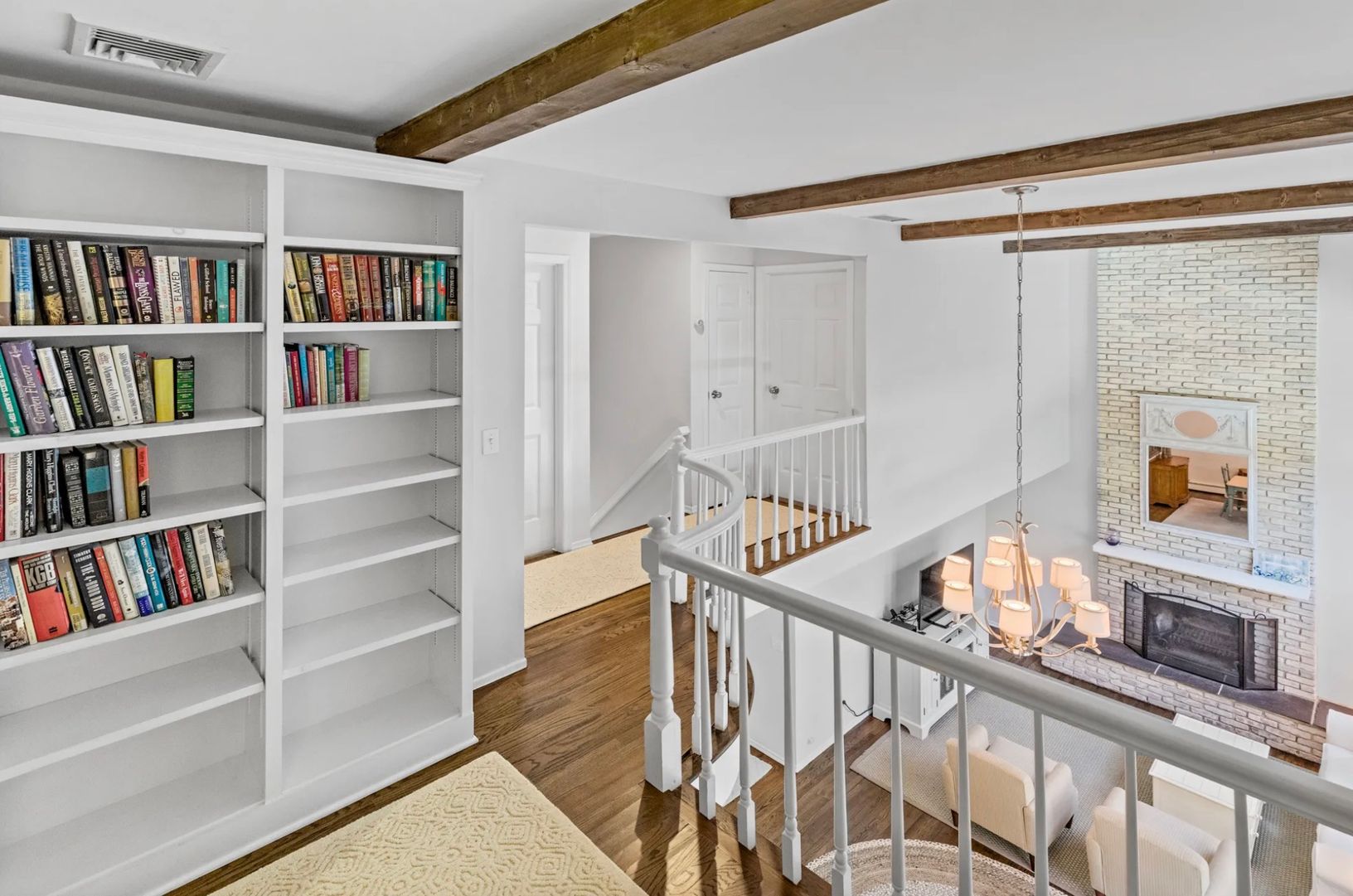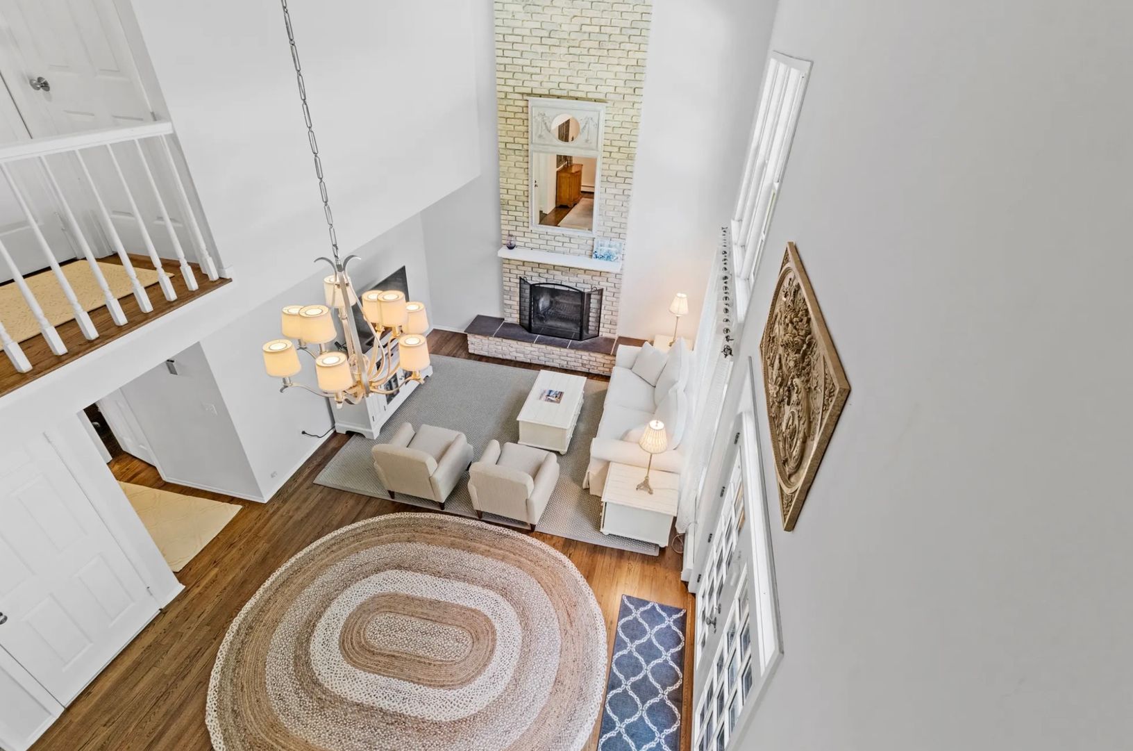 The interior showcases hardwood and tile floors, a sun-filled great room anchored by a classic fireplace, and a we