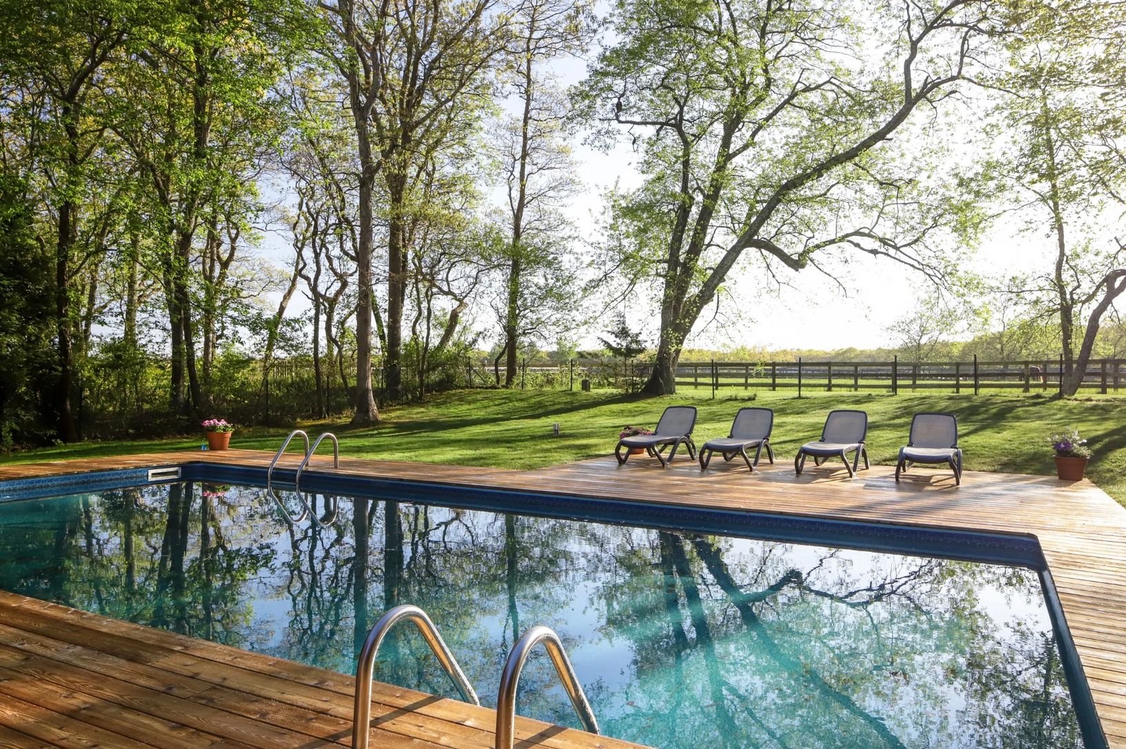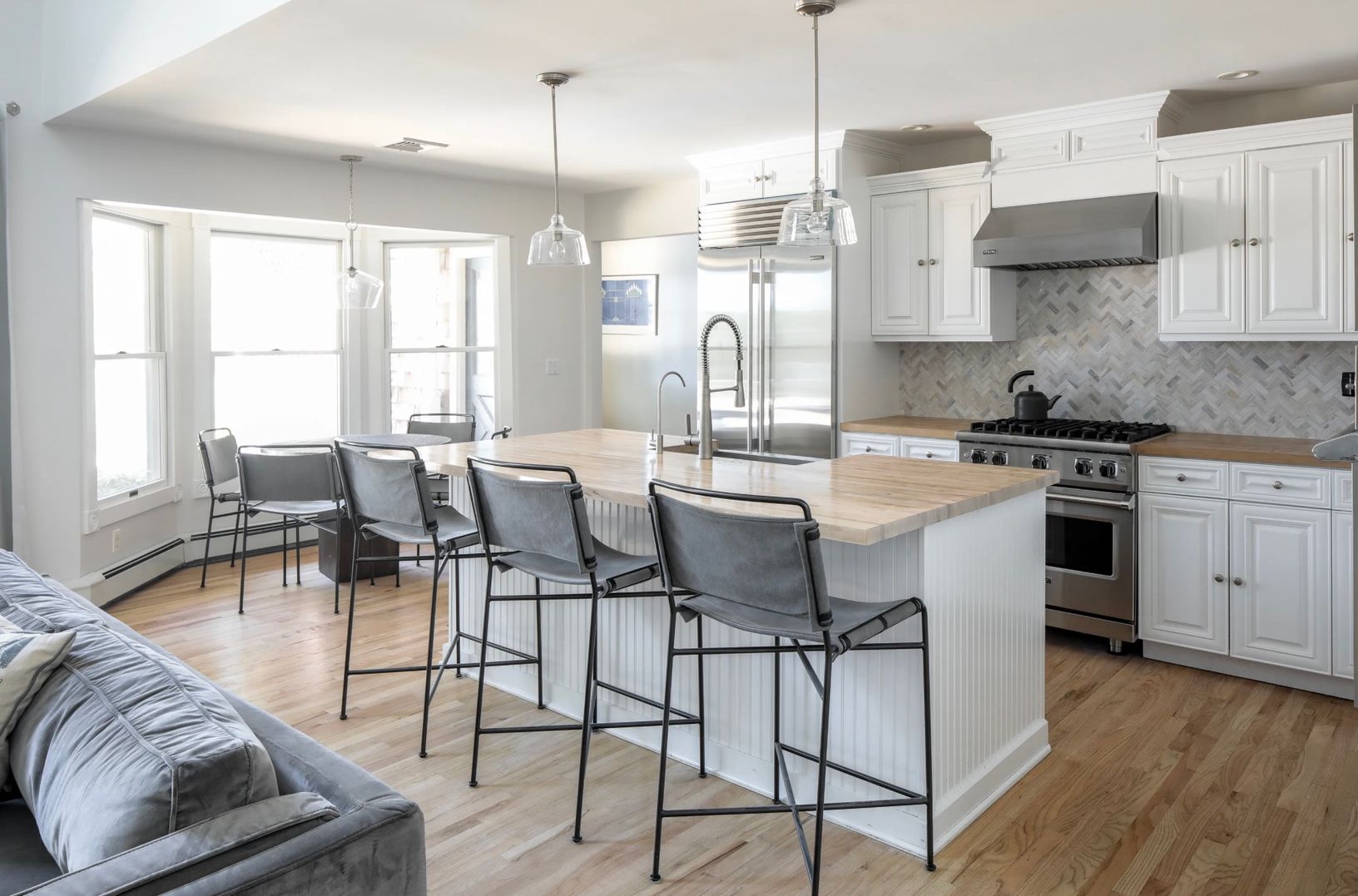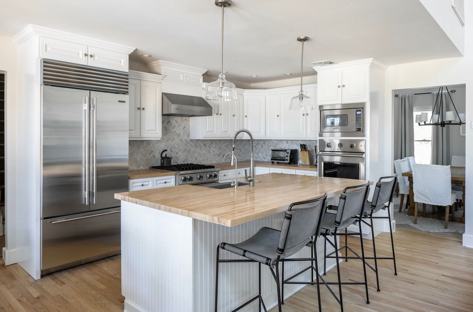 The home offers 6 bedrooms and 5 full bathrooms, including a primary suite on the first floor for easy accessibility. The first floor also includes a guest bathroom for added