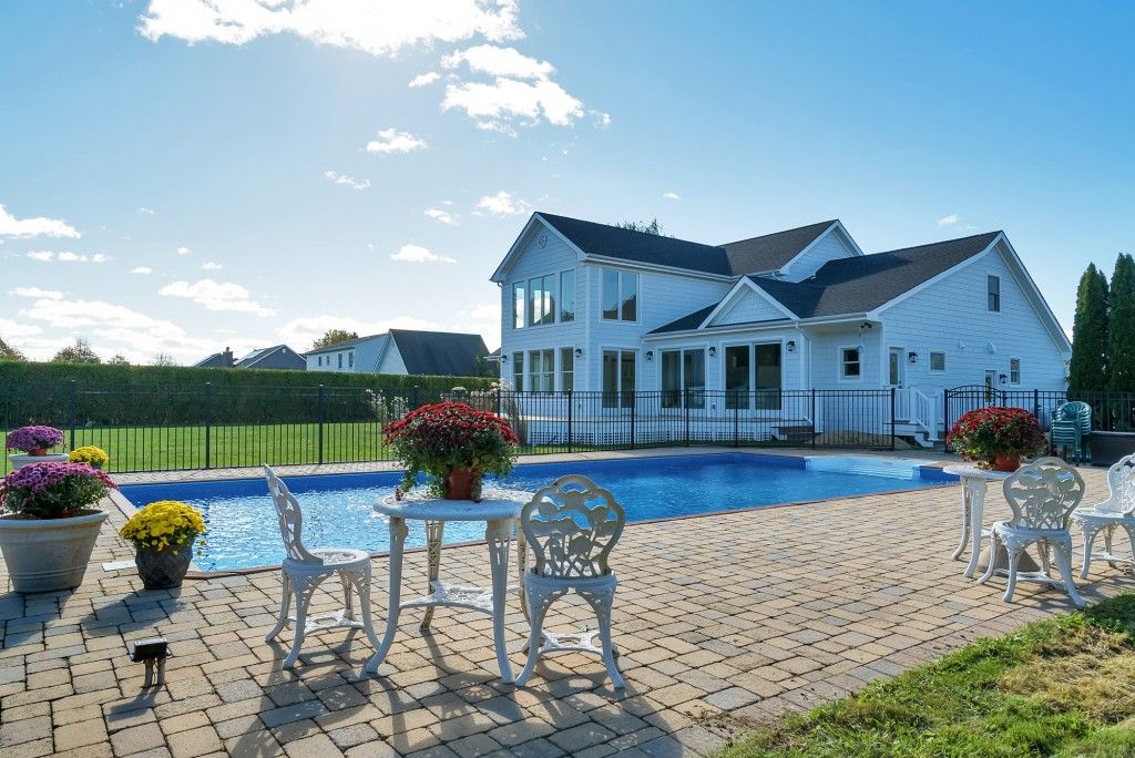 This Is a Newly Renovated Upscale House with 3 En-suite Bedrooms including 1st floor Master suite plus additional guest Bedroom, Light-filled 2-story Great Room with Bar & Large Eat-in kitchen with seating for 12 plus breakfast island and coffee bar. Perfect For Entertaining On Park-Like Grounds With Very Inviting 202 x 402 Heated Pool W/Enclosure, Pool Bath with Shower and Masonry Patio. There Is Also A Large Rear Deck Overlooking Pool an
