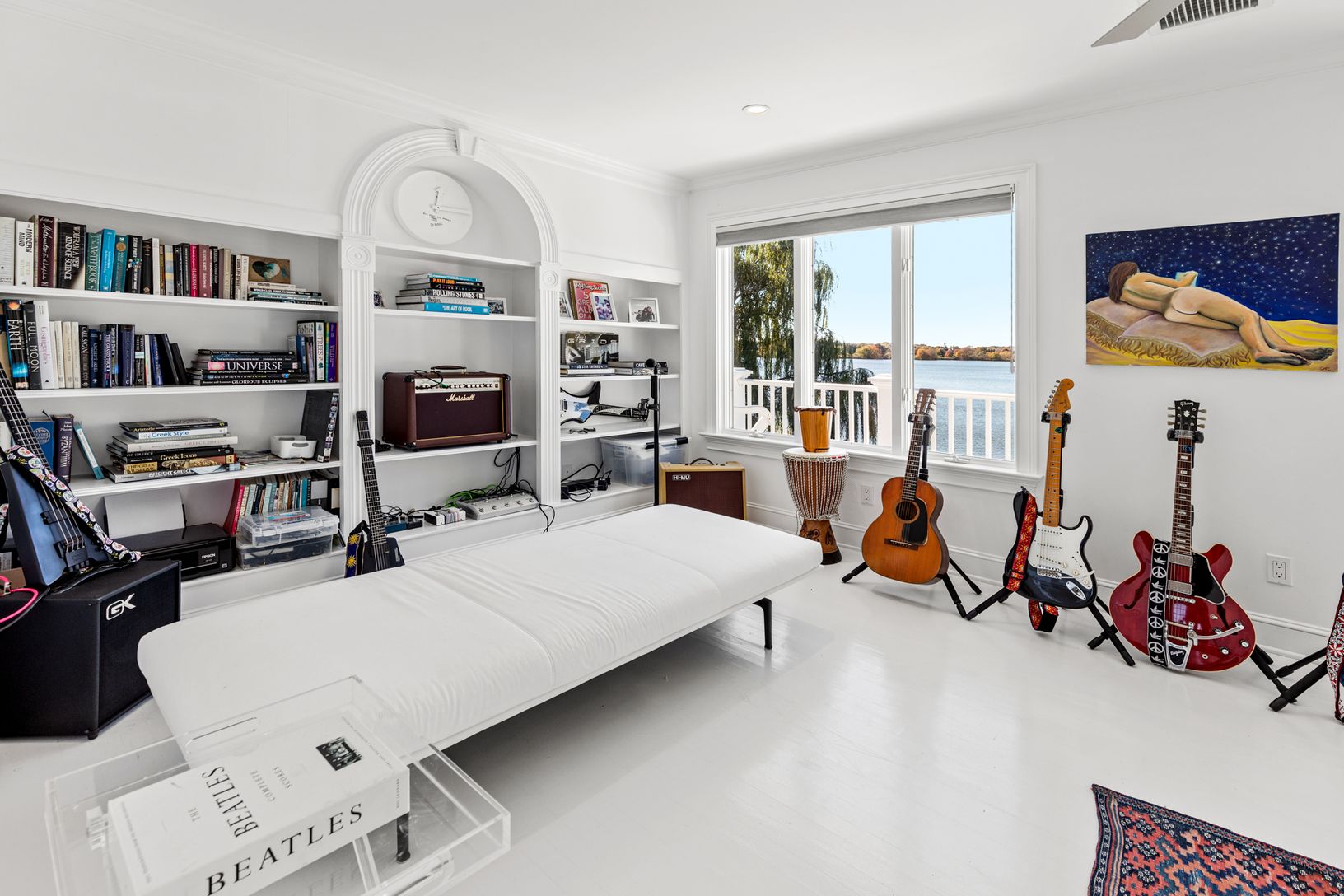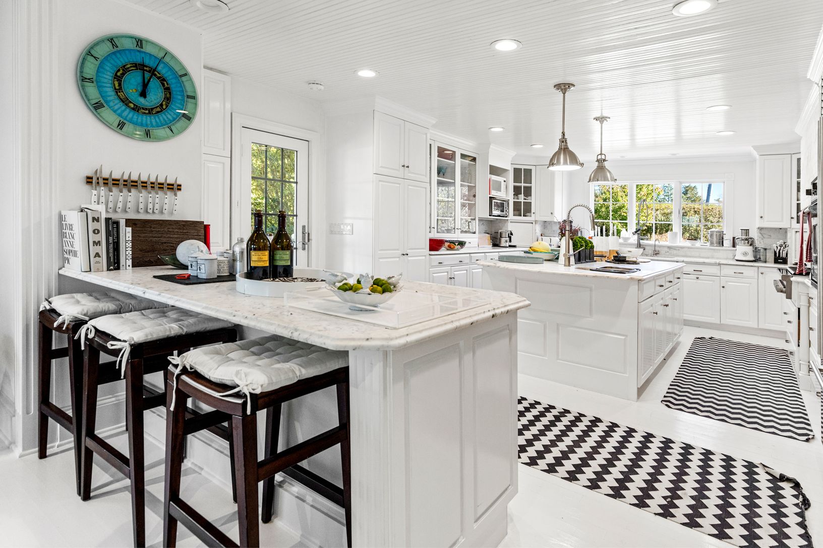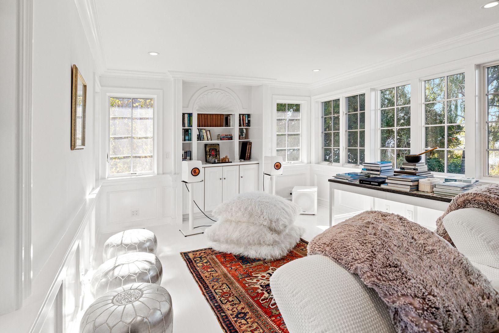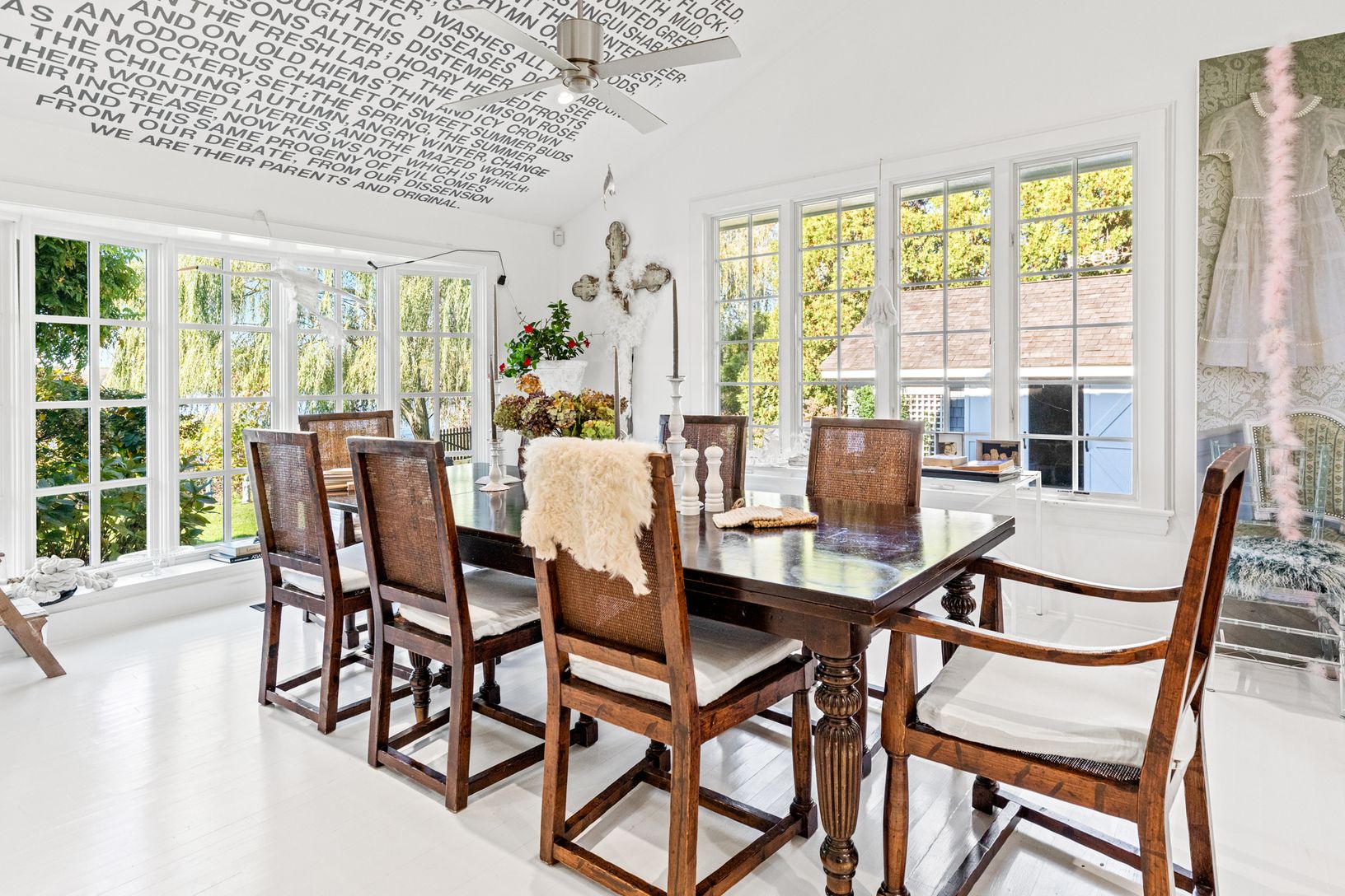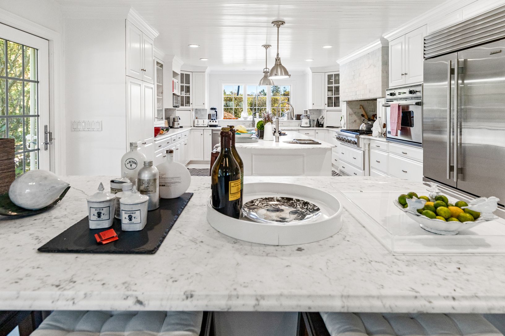Watch the sunset over Mill Pond from every room in this newly renovated Water Mill home with clean lines and modern decor. Designer kitchen with top-of-the-line appliances, including a 6-burner stove for your signature dish. The spacious master suite includes custom built-ins, fireplace, marble bath, and quiet deck overlooking the pond. There are three additional guest rooms, two baths, den and incredible entertaining spaces throughout this ho
