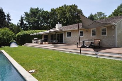 In the heart of Water Mill this 4 bedroom, three and half bath shingled beach cottage has been beautifully renovated and lovingly maintained. Sitting on 1.5 acres of breathtaking landscaping and loaded with amenities such as an 18' by 44' salt water system gunite pool, outdoor shower, ping pong table, 45' gas fire pit with lava rocks, DCS BBQ island with fridge and sink, this house is ready for your US Open getaway. Flooded with light the hous