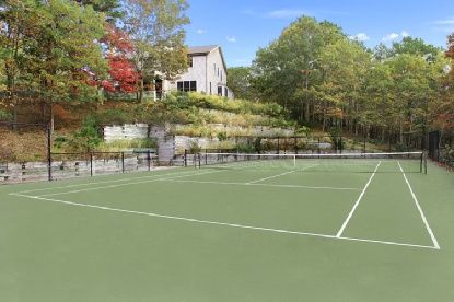 This 6,300 +/- square foot home offers six bedrooms and seven baths which include all en suite bedrooms as well as a master suite with his and her baths and a private balcony with ocean view. The property also features a gourmet kitchen, a formal dining room, a finished lower level with media and game rooms, a heated gunite salt water pool and a Har-Tru tennis court all sited on 2.5+/- acres.