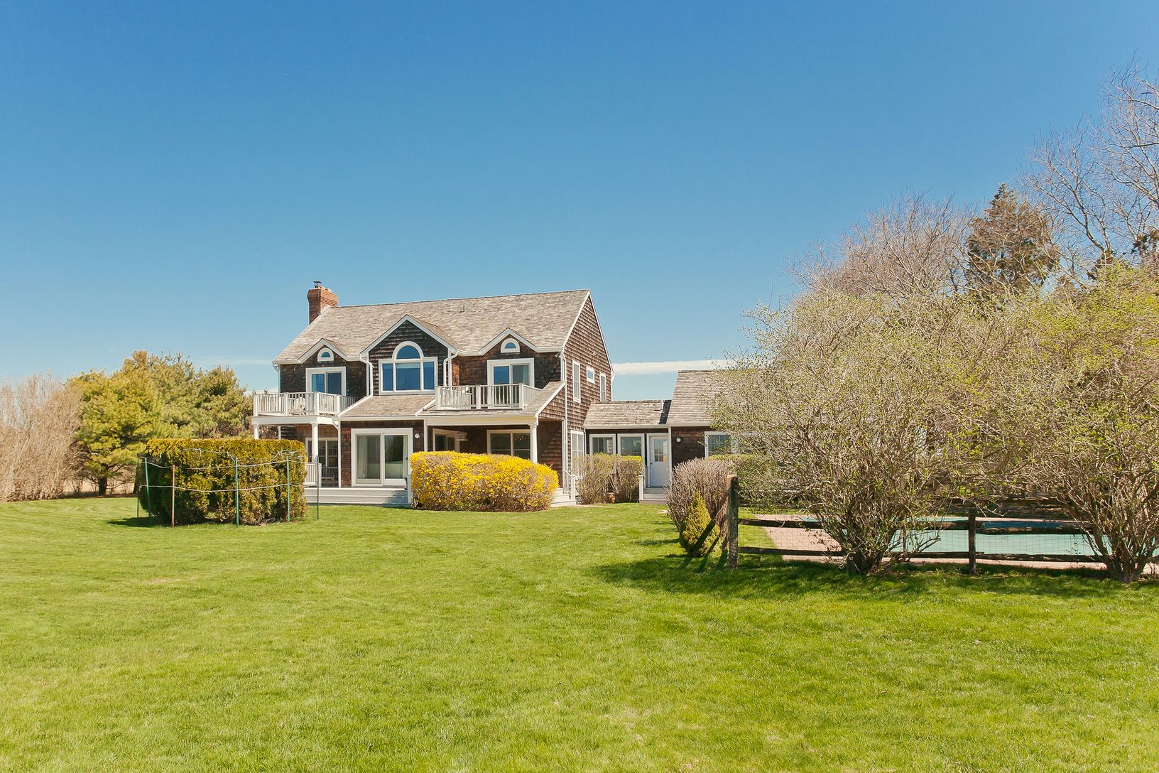Classic traditional in Water Mill horse country with beautiful views, a private back yard with lush landscaping and fenced in swimming pool. Convenient to town and beaches.