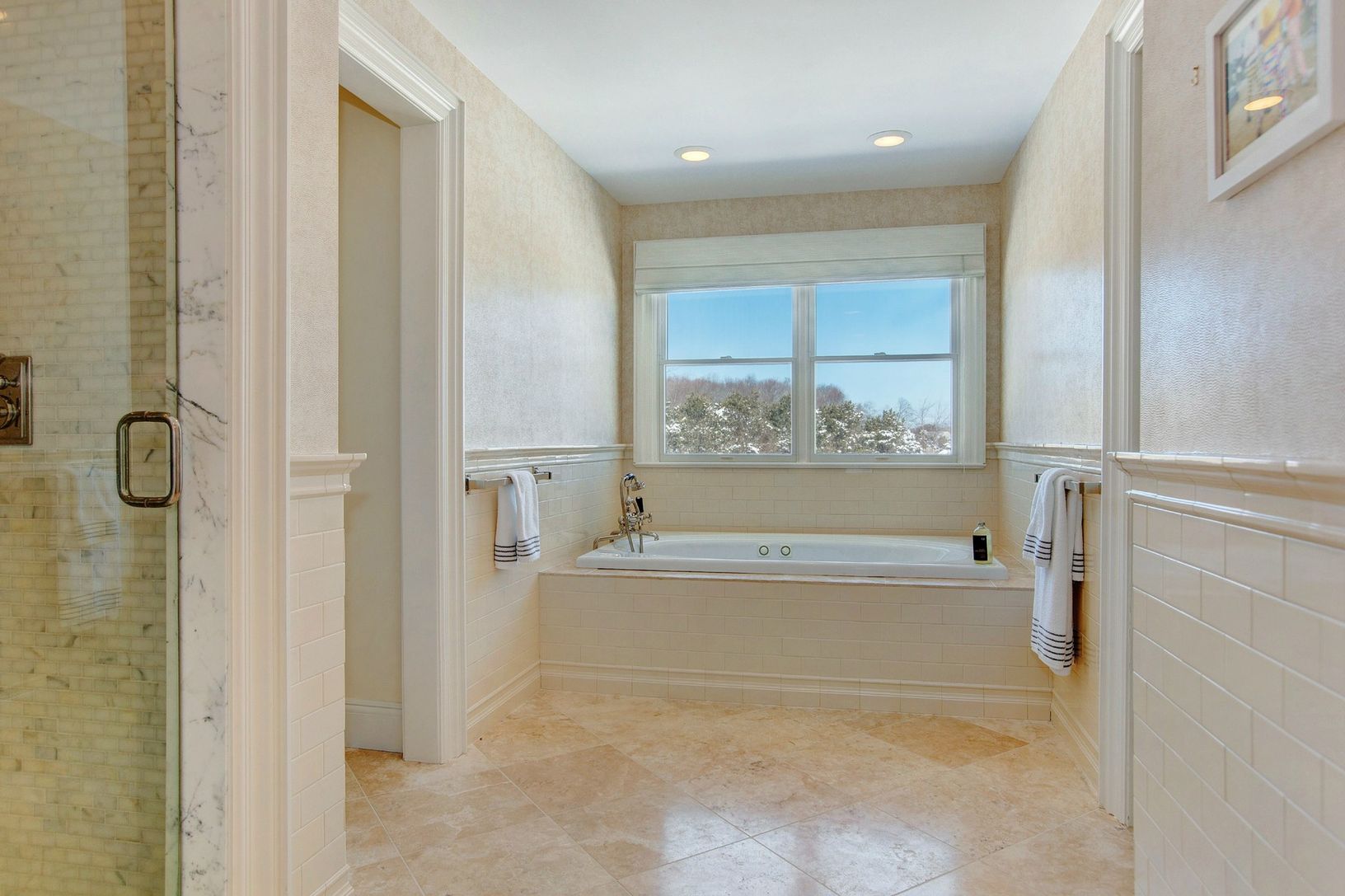 Stunning Post Modern home sited on 1.5 acres with tennis and farm field views! Features include 6 bedrooms, 5 1/2 baths, 2 fireplaces, professional gourmet eat-in kitchen, finished lower level, and wonderful entertaining spaces throughout. Adjoining a 36 acre reserve, the exterior boasts beautiful grounds including a heated 18' x 50' gunite pool with spa and pool house, and an all-weather tennis court. A wonderful way to spend your summer vaca