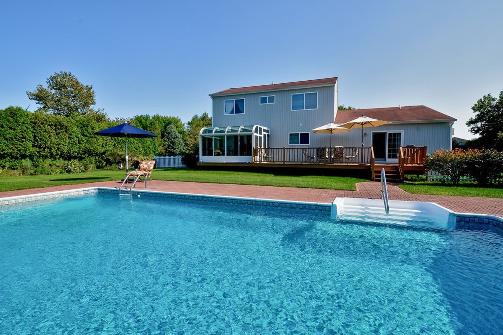 This Water Mill home offers every amenity. The beautifully landscaped nearly 1-acre property includes a heated pool, solarium and expansive outdoor decking. Spacious living room, dining area, kitchen, den, three bedrooms, two and one-half-baths, fireplace, central air-conditioning. Located only steps to all conveniences, shops and beaches. Available August-LD 2018 @ $20,000.