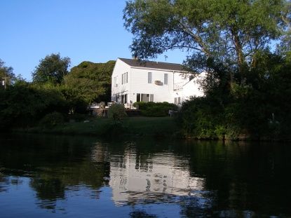 Located in the heart of Water Mill on 70+/- feet of waterfront, this two-story Traditional has three bedrooms, two and one-half baths, open living room and dining area with spacious granite eat-in-kitchen, and a family room with ping pong table. Additional loft in den/studio. Great deck with pond views, perfect for entertaining. Near Mecox bay and Flying Point beach. Jacuzzi hot tub, Travertine patio with steel outdoor grill, two outdoor s