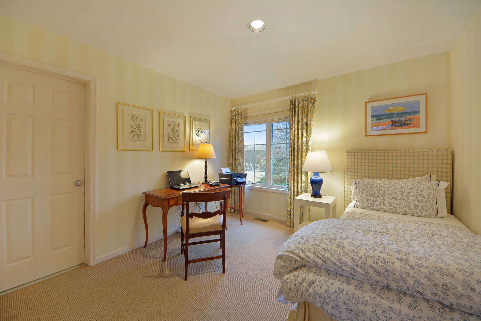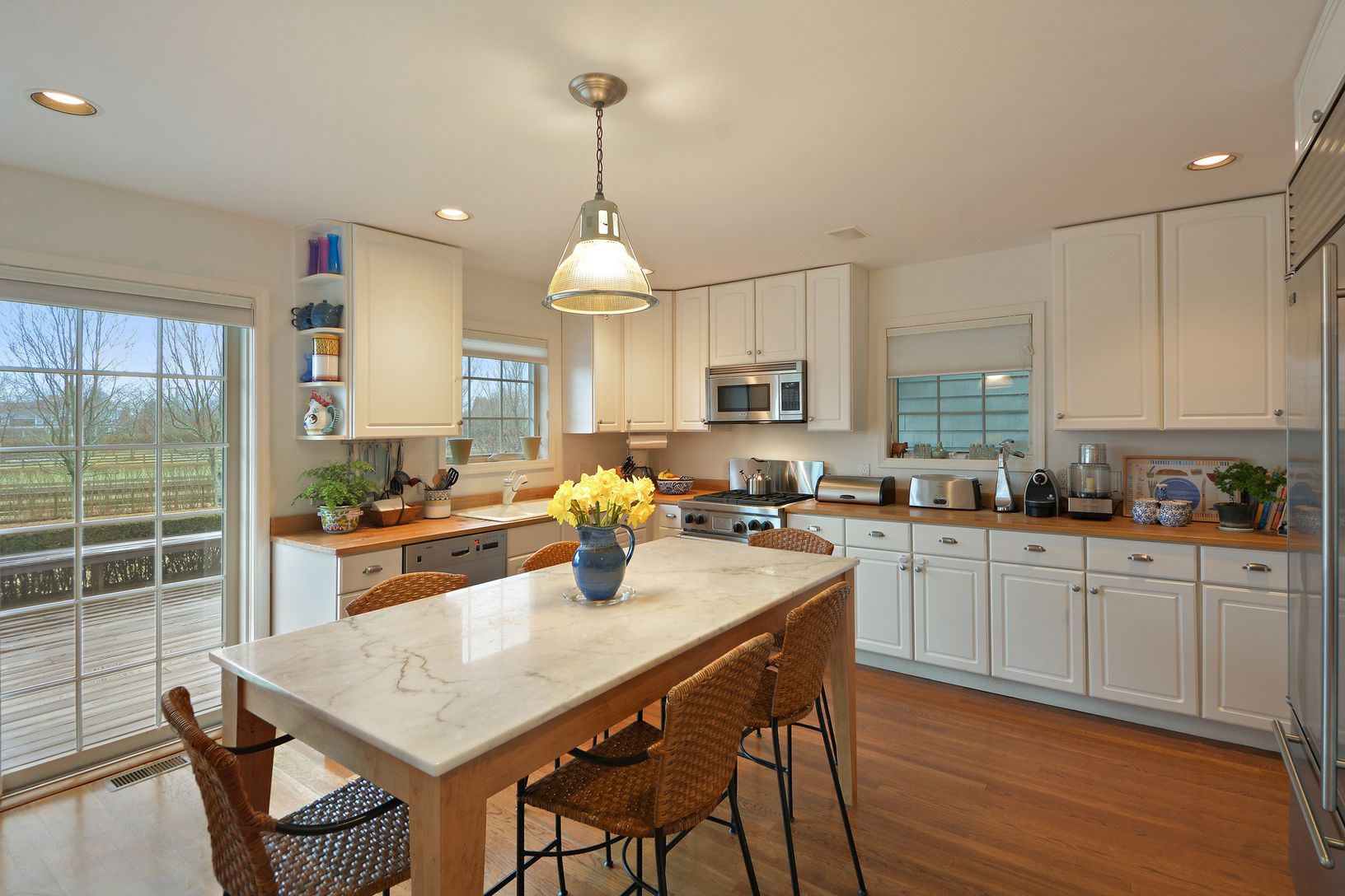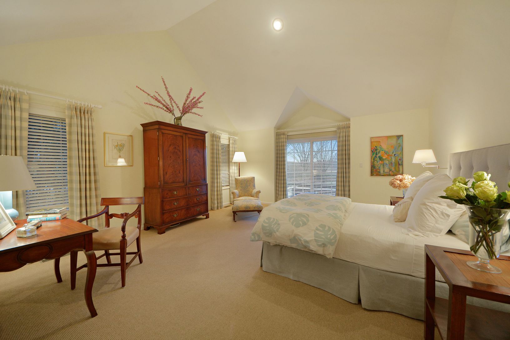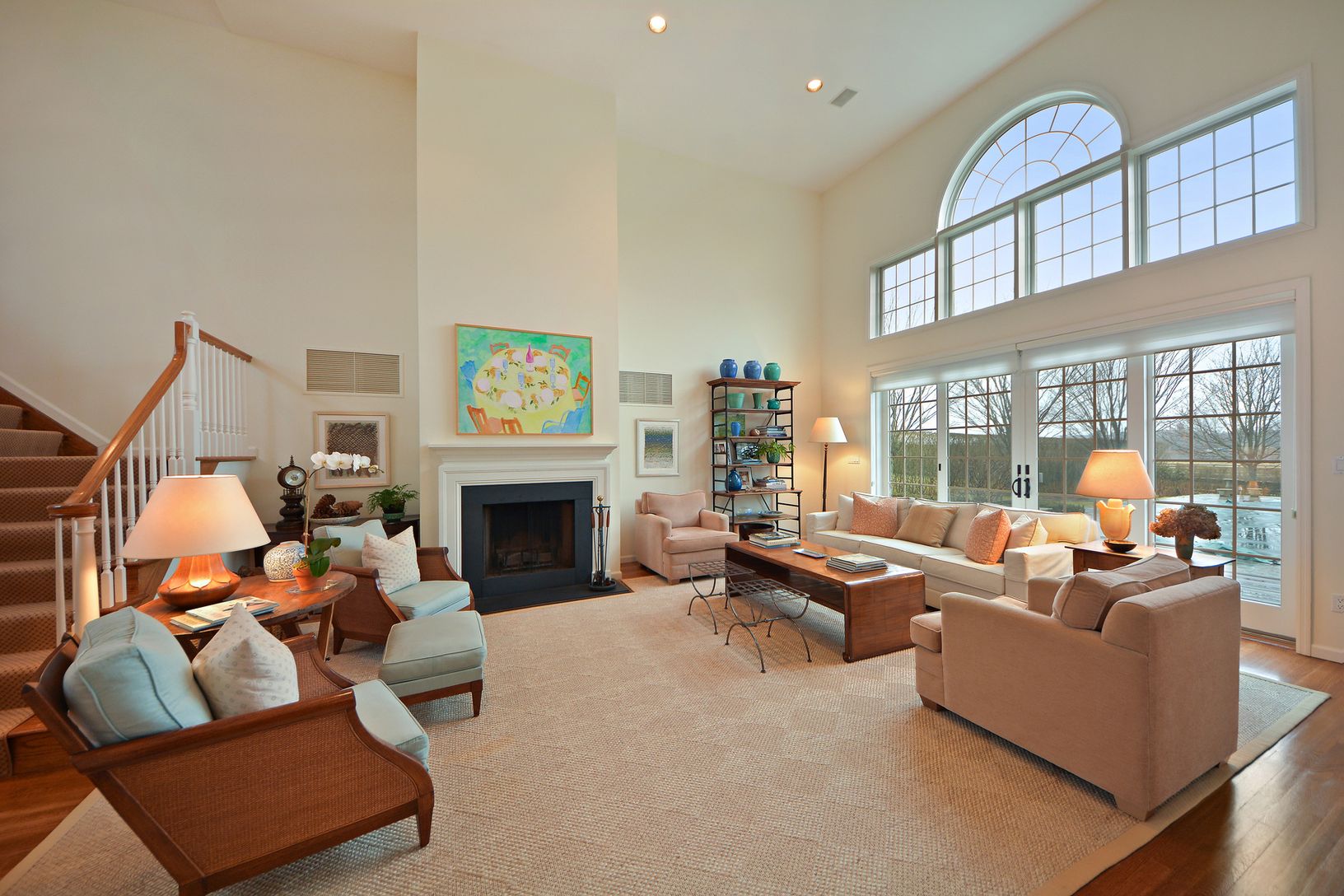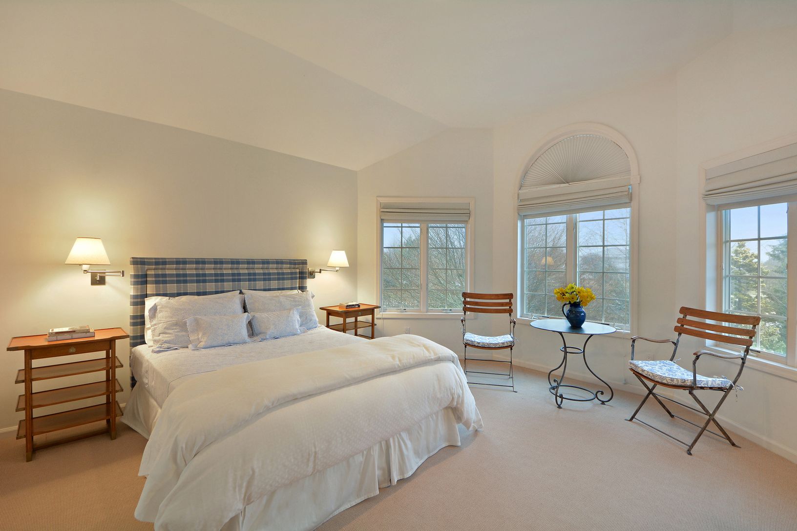 This sophisticated and beautifully decorated post modern home is located south of the highway on a quiet cul de sac close to both the ocean and Mecox Bay. This home has an open floor plan , huge windows and amazing light. The living room with 14 foot ceilings has a wall of floor to ceiling windows and a sliding glass door that opens to the back deck and pool area. There are 4 bedrooms with a huge master bedroom on the ground floor. The h