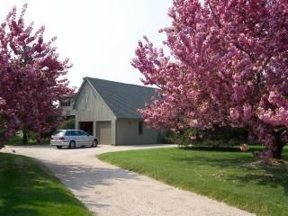 Unique and immaculate Barn-style home. Three bedrooms, four baths, all amenities, a heated pool, and a private location with a view of Hayground Cove. Beautifully furnished with antiques, this home is comfortable and pretty with central air conditioning and a lovely country kitchen.