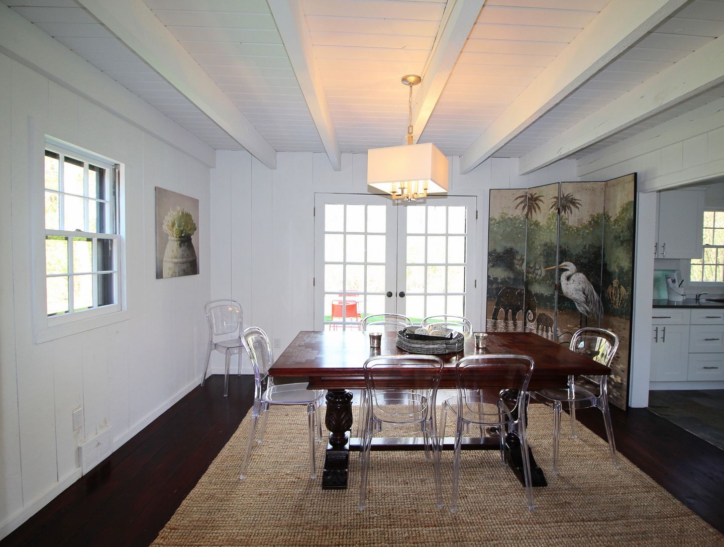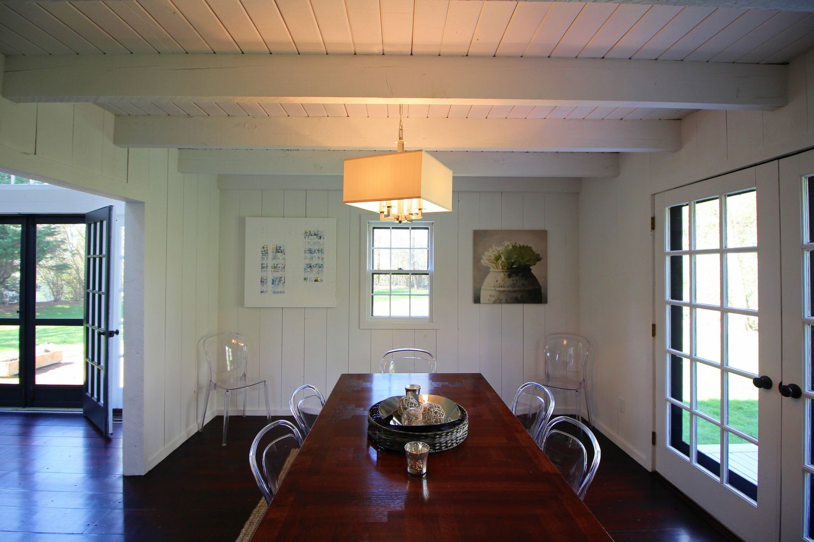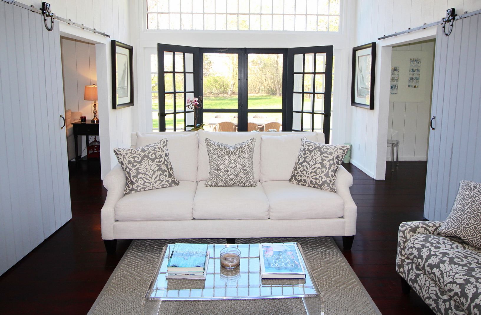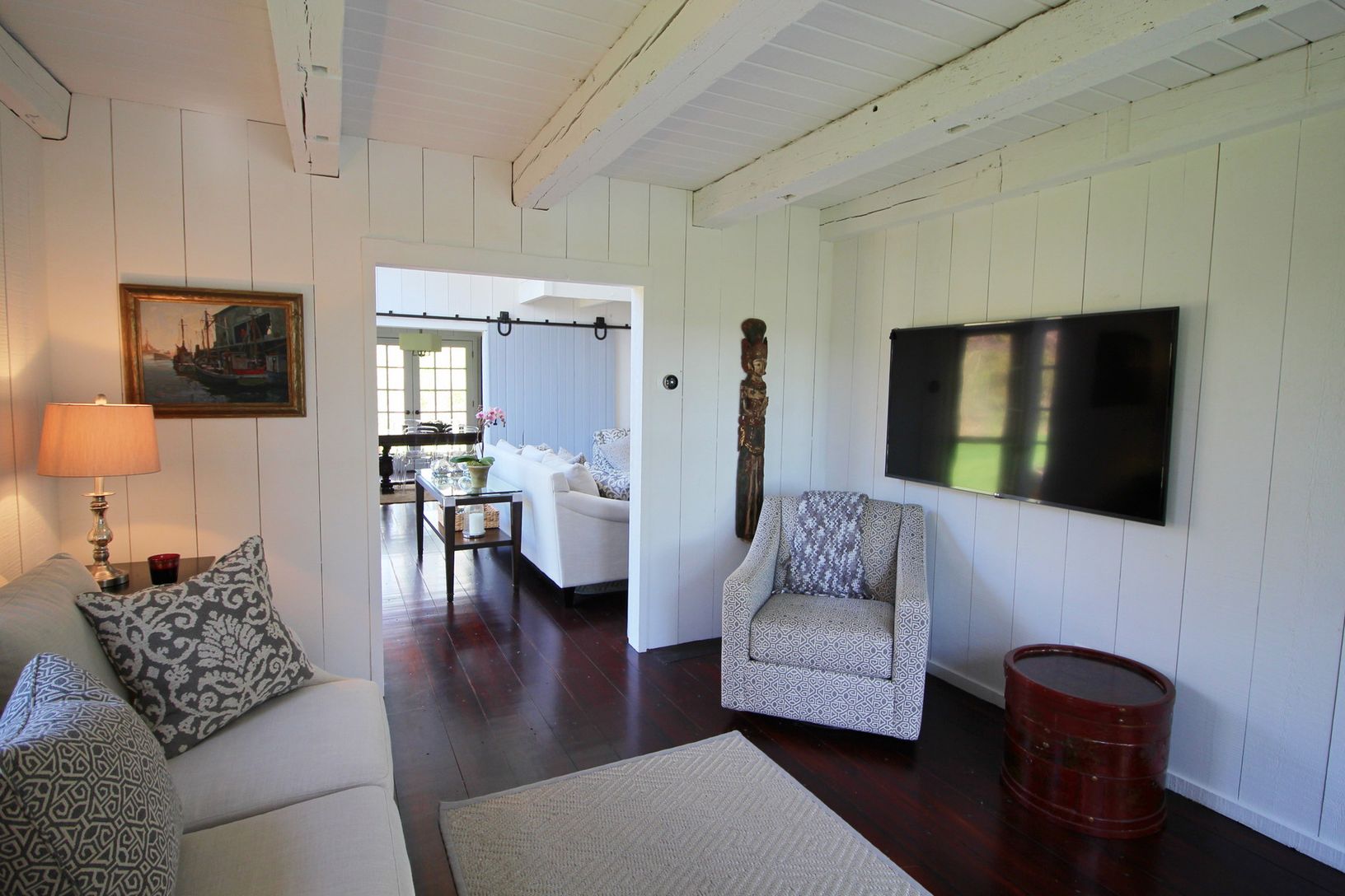 This lovely Barn style home is situated on a quiet cul- de- sac South of highway in Water Mill. Huge living space with floor to ceiling windows and fireplace, den/tv area, renovated kitchen. With wide plank floors and fresh paint, master and two guests upstairs, screened in porch. dining area. With a delightful heated fenced pool. Come enjoy all the Hamptons has to offer from this great home!
