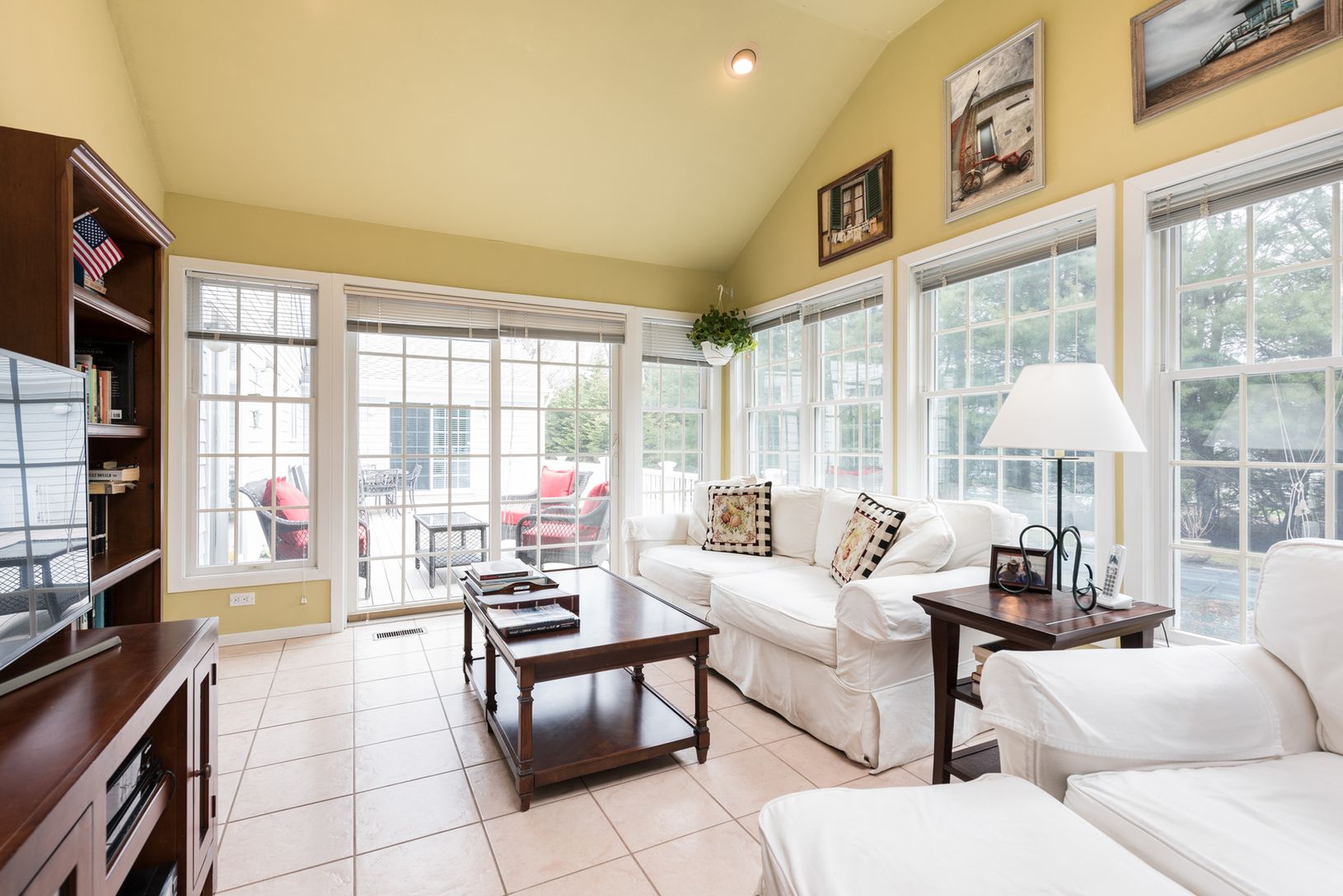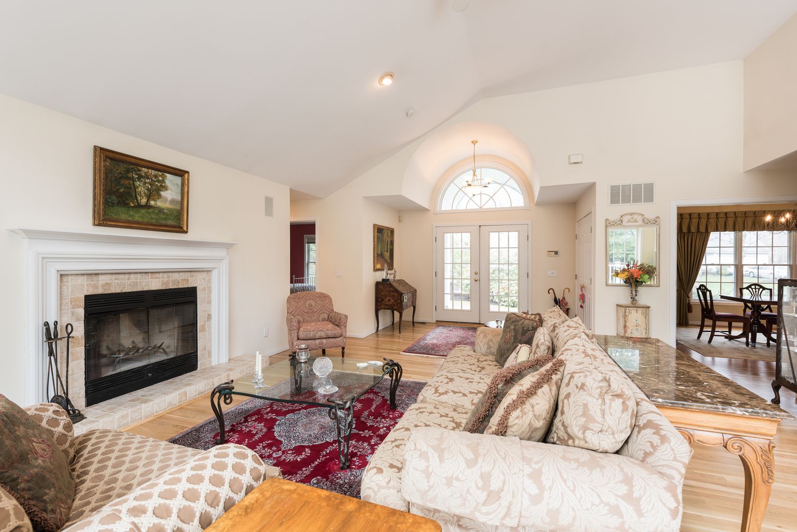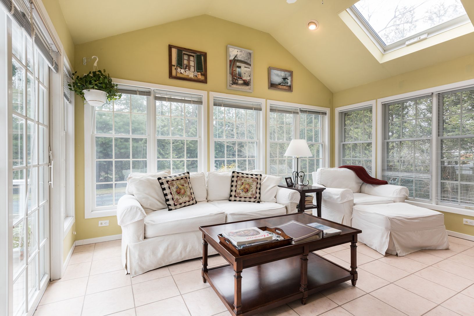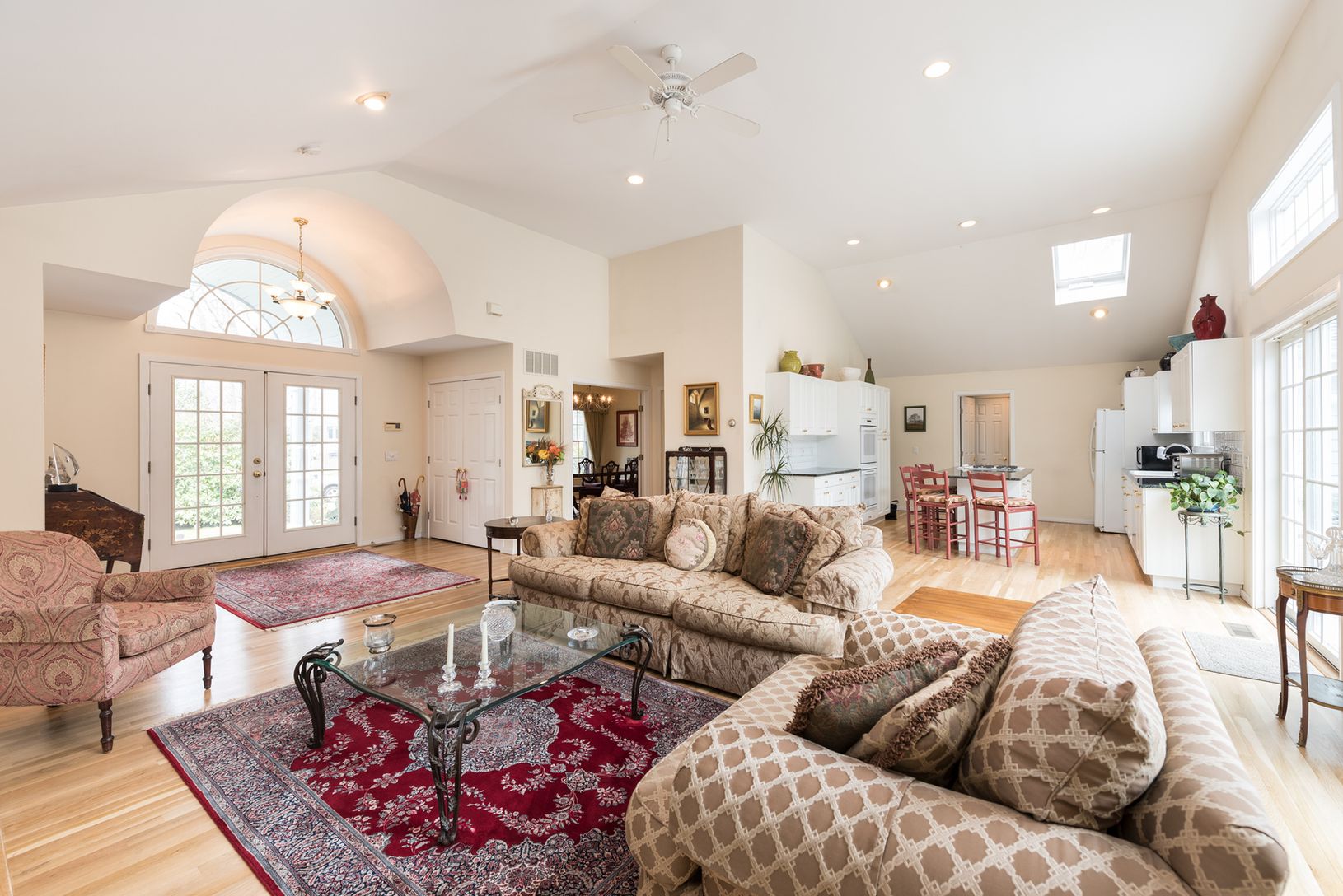 This beautiful village open concept home features three spacious bedrooms, three full bathrooms, a light bright sunroom and a separate dining room. The kitchen is open to the living room with vaulted ceilings, skylights, wood burning fireplace, and several sliding doors out to the deck and pool. The laundry room is off the kitchen and there is access to the two car garage from the kitchen. This home is carefully planned and well maintained for