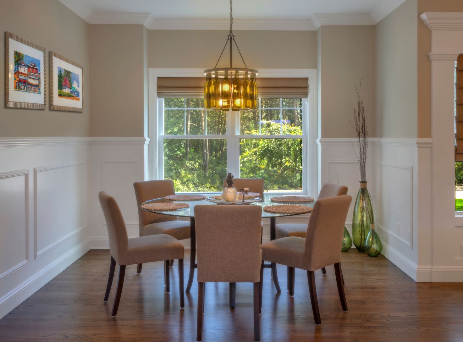 Quietude and serenity, this one year young home is the perfect retreat. Just the right size with an open floor plan, paneled walls and crown moldings that offers the rooms a classic dimensional feeling. There are 3 bedrooms on the main level, master en-suite with gorgeous bath, 2 additional bedrooms with a shared bath. A large pantry, laundry room with a sink and an entrance to outside. The floors are hardwood, stained a rich medium brown.