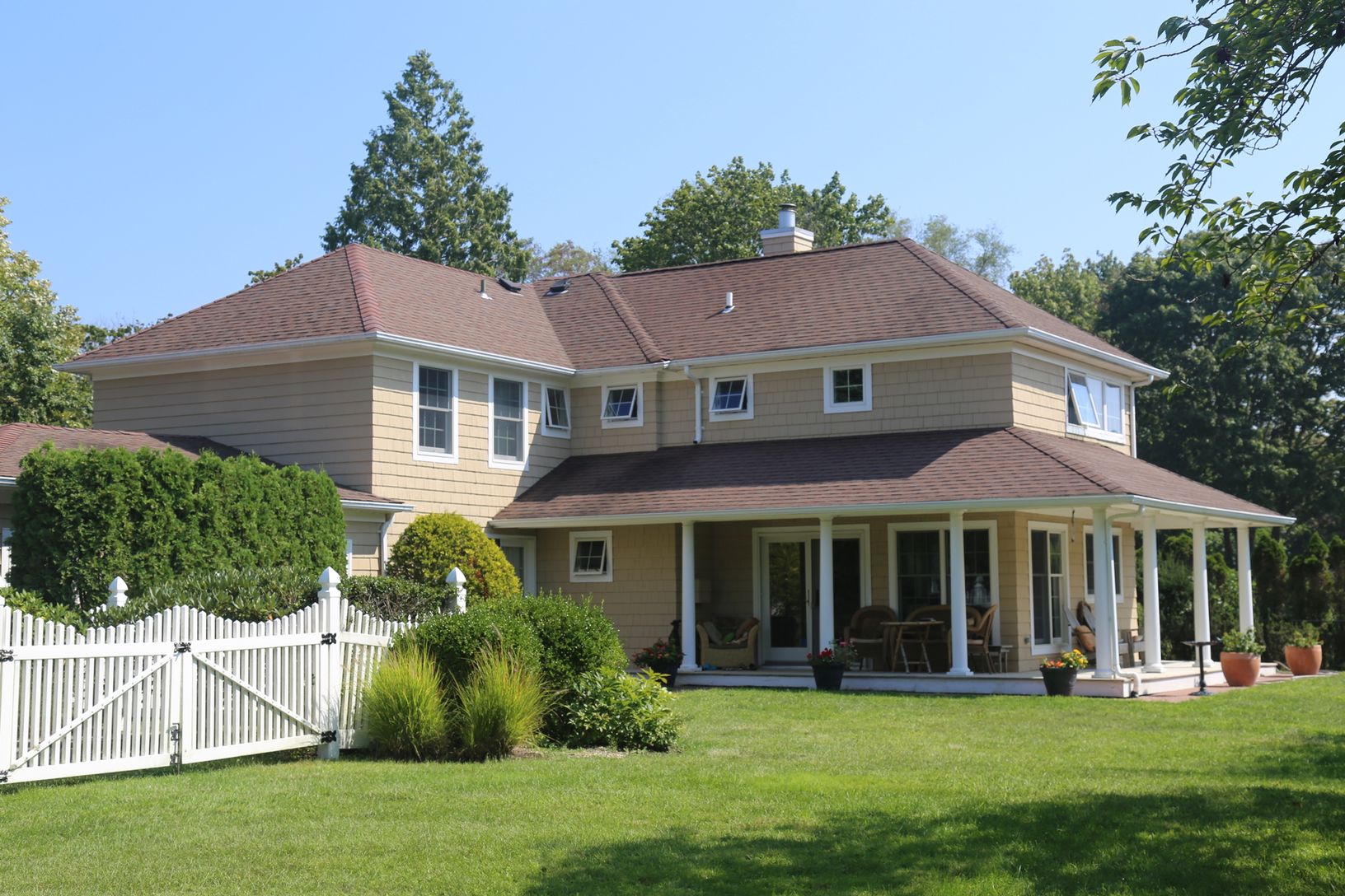 Beautiful one acre property located in the village of Westhampton Beach. This charming Traditional has a master bedroom suite with four additional guest bedrooms. There is a large bedroom on the first floor with French doors that lead out to the grounds. The large eat-in kitchen is nice and sunny and leads out to the picturesque covered porch. The living room has a fireplace and an adjacent den for plenty of room for a large family. The pr