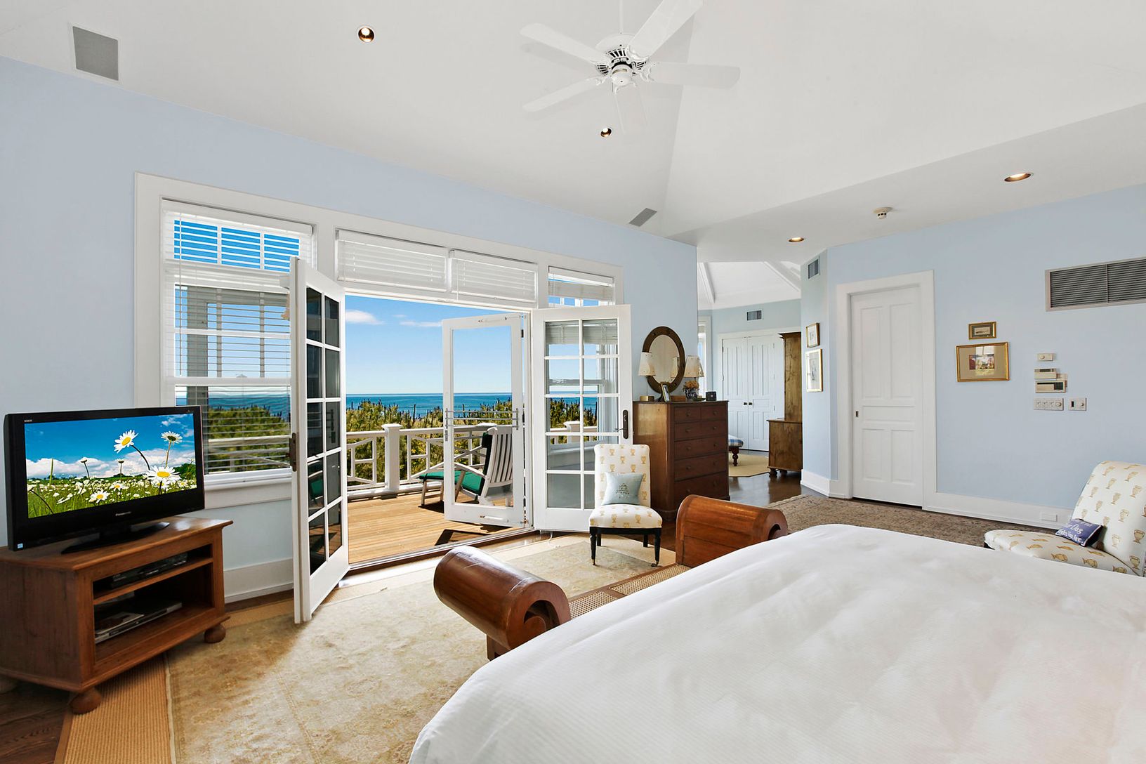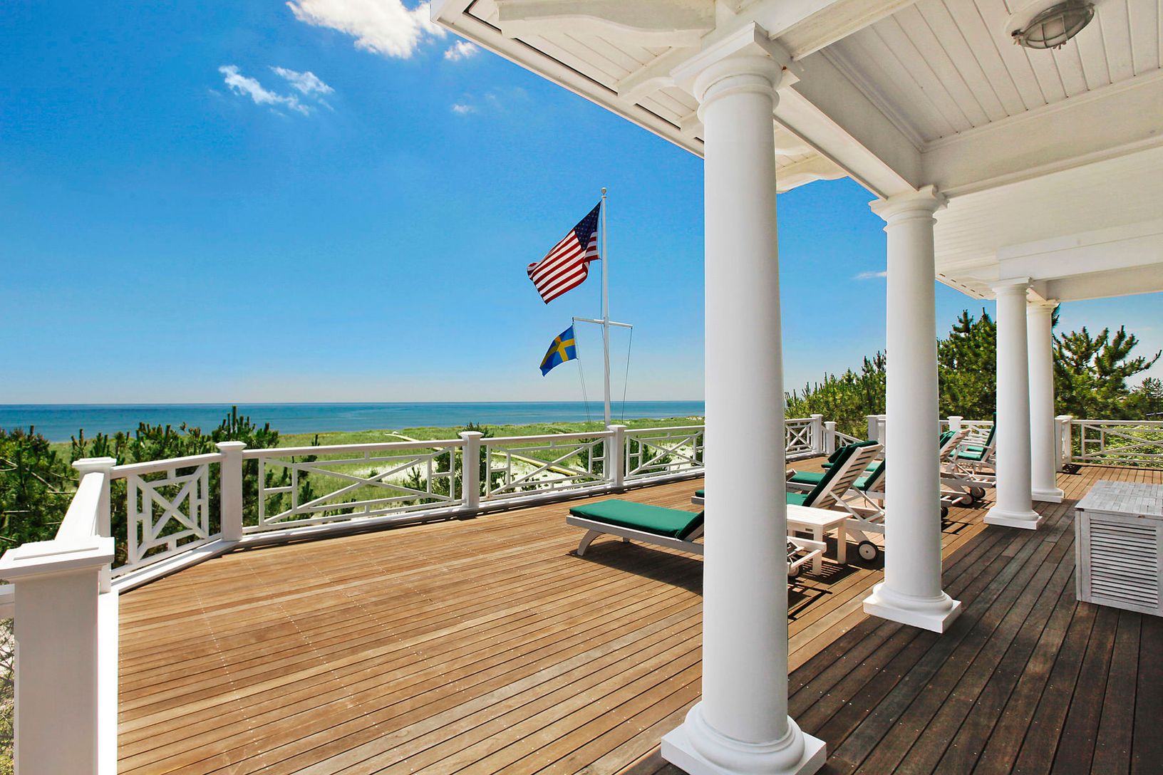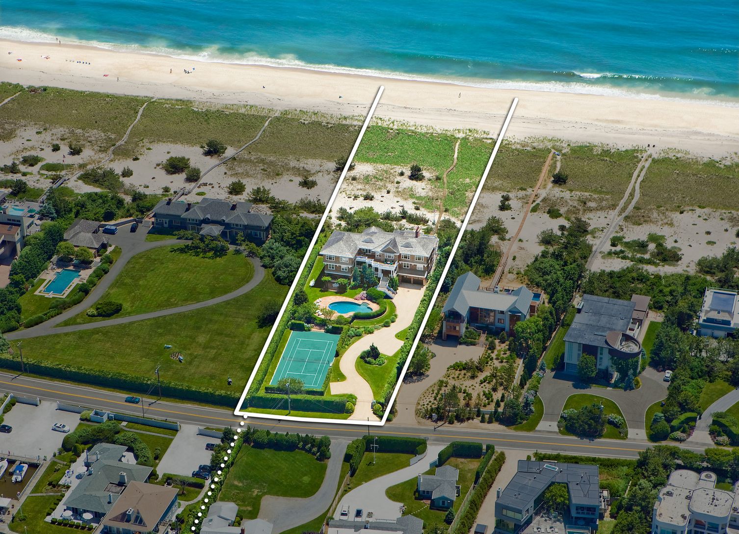 Oceanfront living at its finest. Offering over 150 feet of perfect Westhampton Beach waterfront. Commanding ocean and bay views from every room in this 10,000 sq ft well designed masterpiece with exceptional details. Begin with a grand entry foyer, leading the guest wing with media room with kitchen and French doors to the expansive decking and three bay front bedroom suites. In addition there are two ocean front guest suites, one with fire