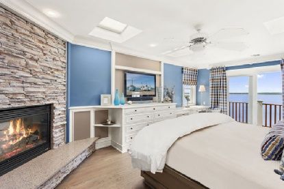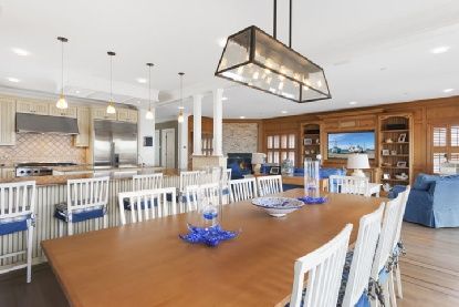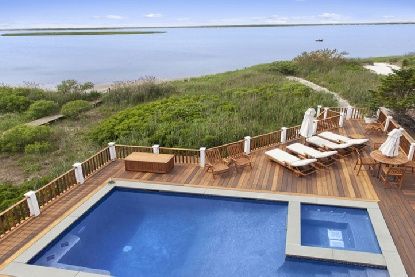 This spectacular water front home has extraordinary sunset views overlooking Moriches bay and sits at the end of a long winding driveway off Dune Road. A wide entry foyer brings you to an oversized great room with fireplace, large open chefs kitchen and dining area. Custom details are evident throughout. French doors open to a waterside deck surrounding a heated gunite pool and spa with water views from every vantage point.. With a total of