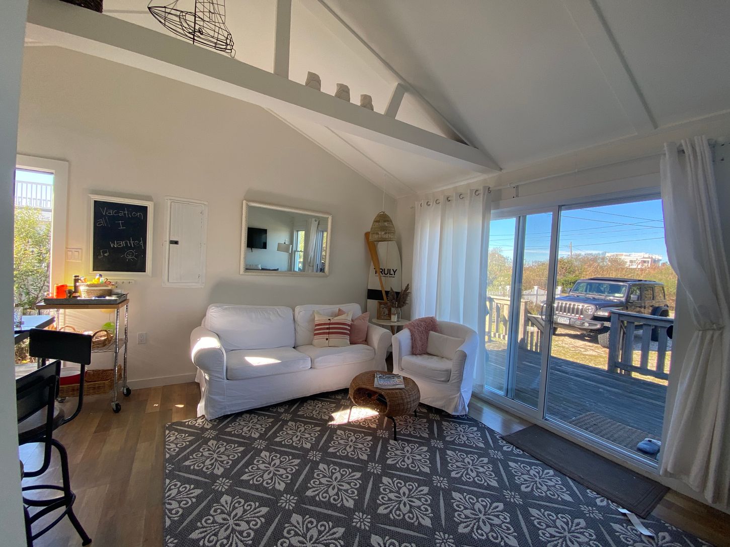 Cute, updated cottage in Westhampton Dunes! Located between the ocean and the bay. Walk across the street to miles of beautiful private ocean beach. Walk across the street to miles of beautiful private ocean beaches. Short walk to Cupsogue Beach County Park (296-acre park with lifeguards, live music, food, drink, and beautiful nature). The park is surrounded by the Atlantic Ocean, Moriches Bay inlet, and Moriches Bay.