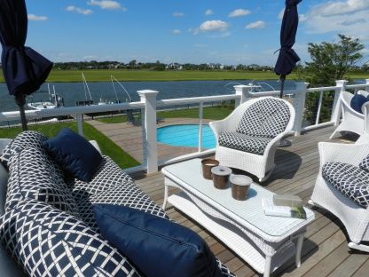 Between the bridges, in a prime bayfront location of Westhampton Beach, this brand new, state of the art Post Modern offers a great room, den with fireplace for cool summer nights, a gourmet eat in kitchen, a master bedroom suite with walk in shower, plus two additional bedrooms and two fully tiled baths. This stunning property also offers a separate two bedroom guest house complete with sitting area and fireplace, kitchen and washer/dryer fo