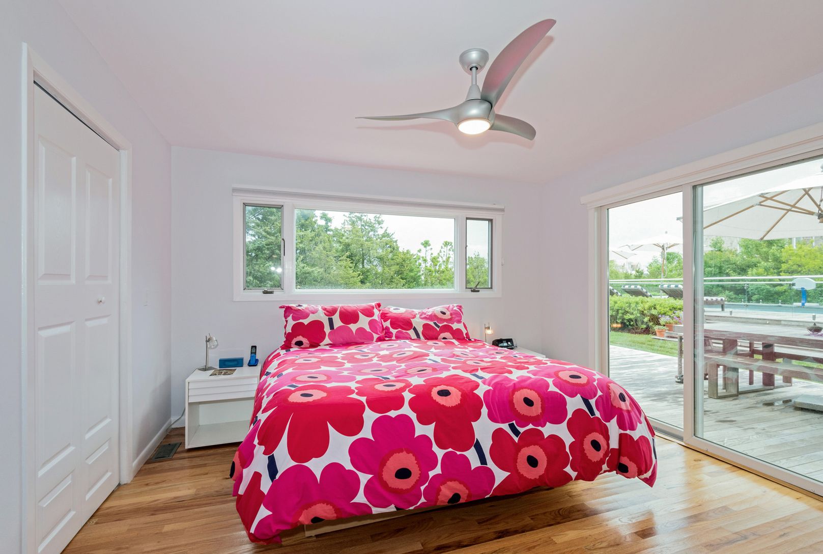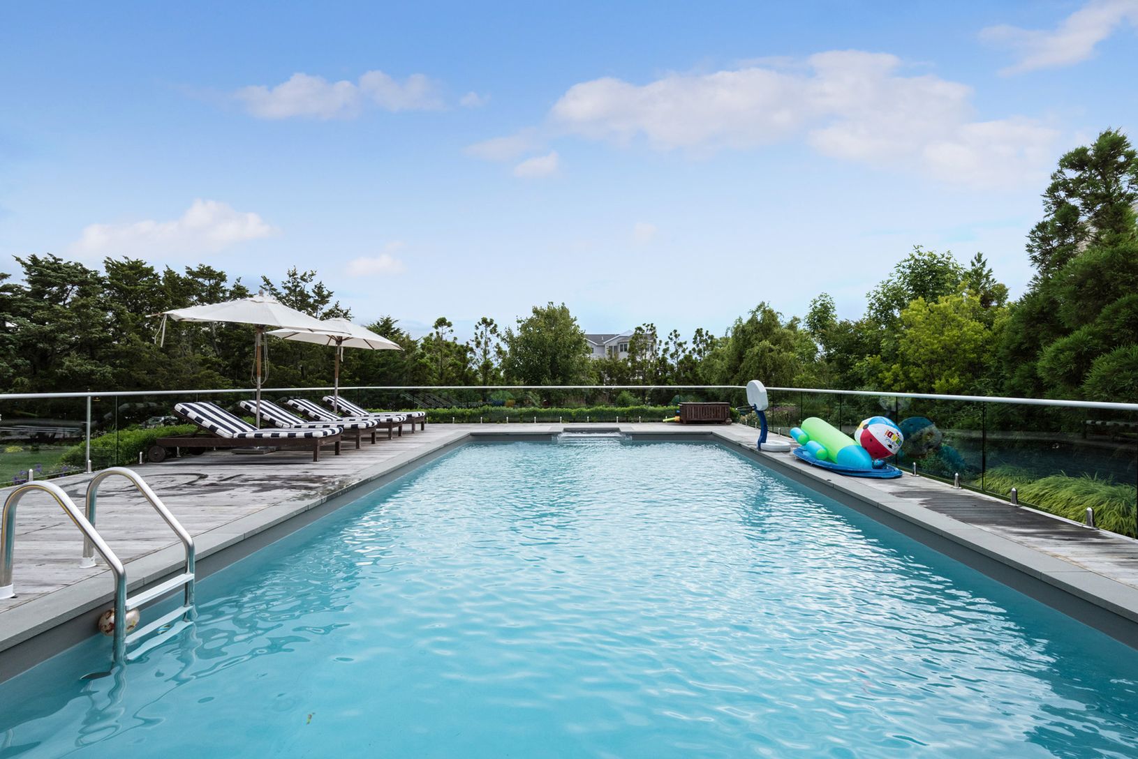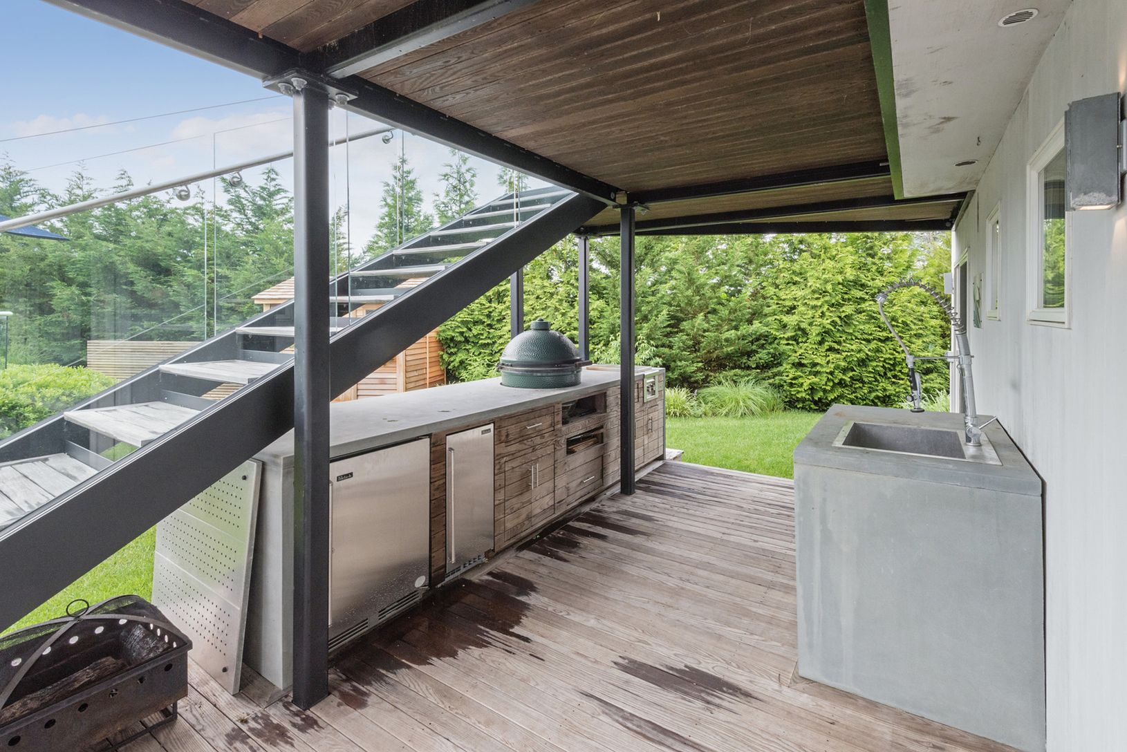 In the estate section of Westhampton Beach, this updated contemporary near the bay presents breathtaking water views and sunsets. Walls of glass and glass doors blend indoor and outdoor living areas and showcase the beautiful professionally landscaped grounds rich with the colors of perennial beds and borders. A full outdoor kitchen makes it easy to entertain both indoors and out. There are three bedrooms and three and a half baths, including