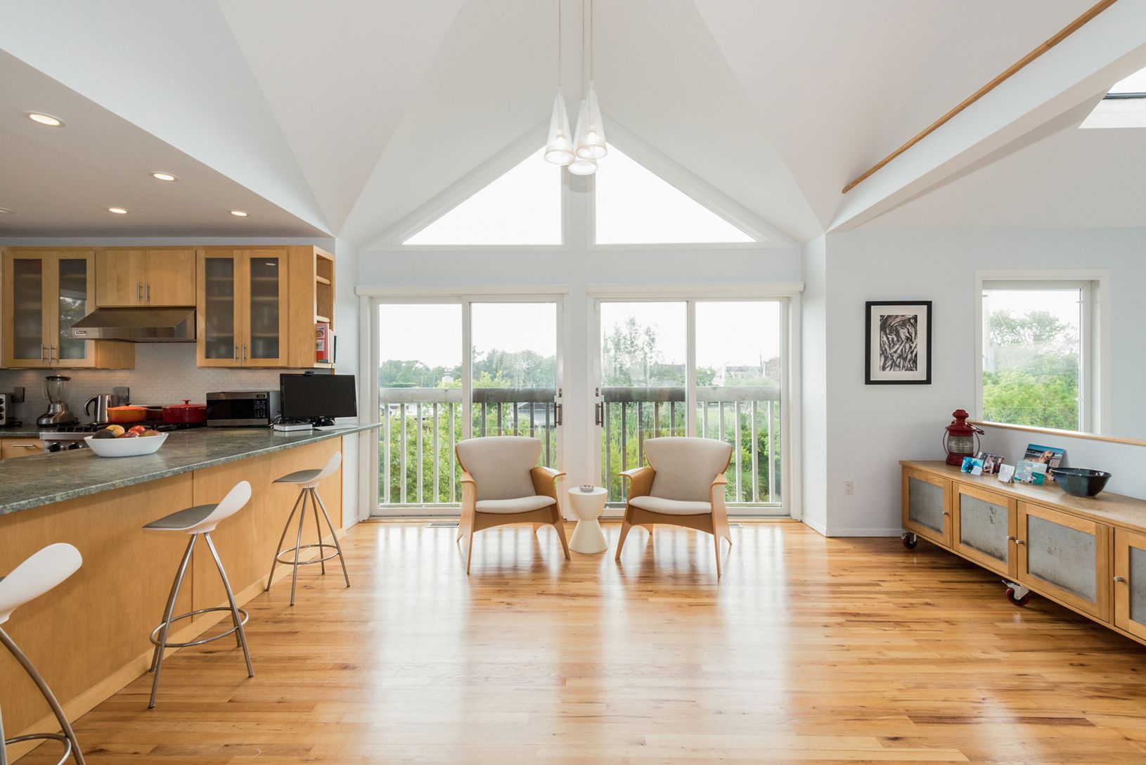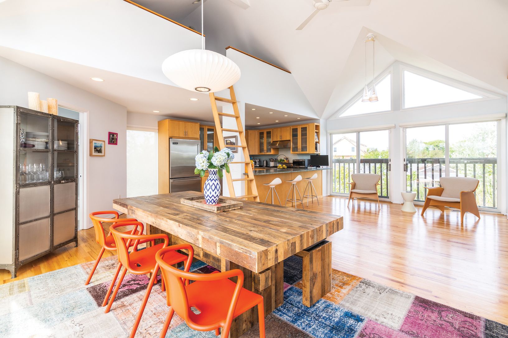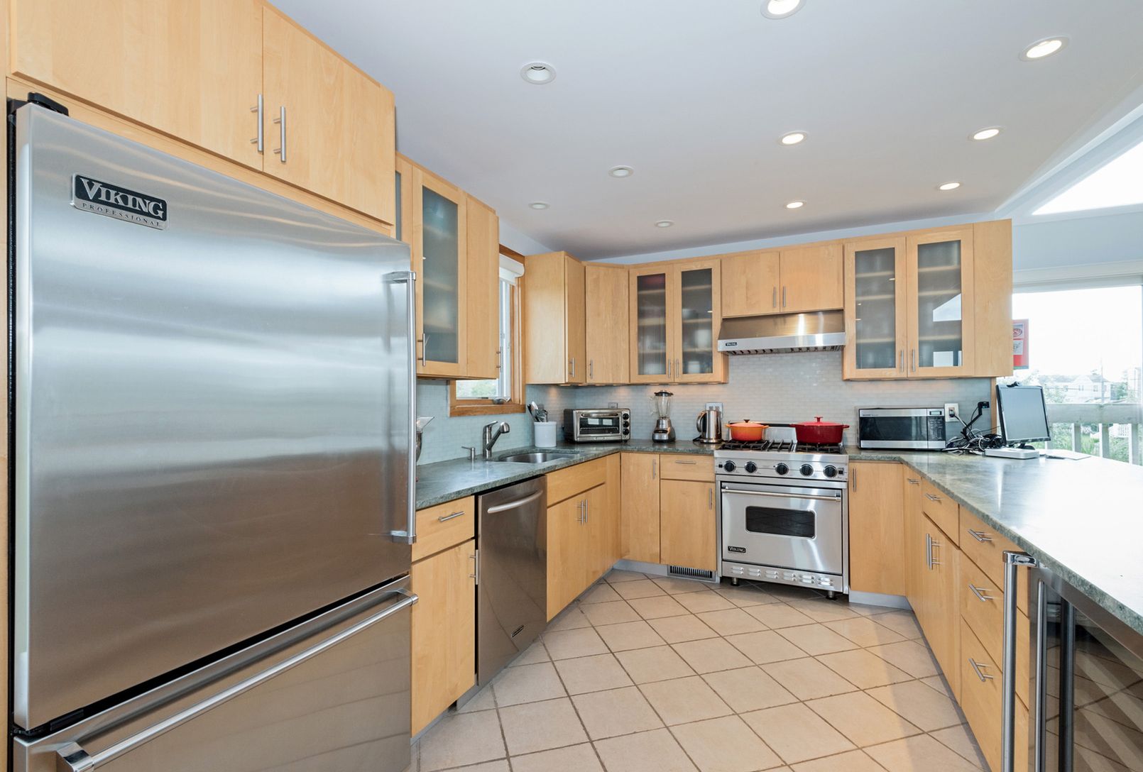 In the estate section of Westhampton Beach, this updated contemporary near the bay presents breathtaking water views and sunsets. Walls of glass and glass doors blend indoor and outdoor living areas and showcase the beautiful professionally landscaped grounds rich with the colors of perennial beds and borders. A full outdoor kitchen makes it easy to entertain both indoors and out. There are three bedrooms and three and a half baths, including