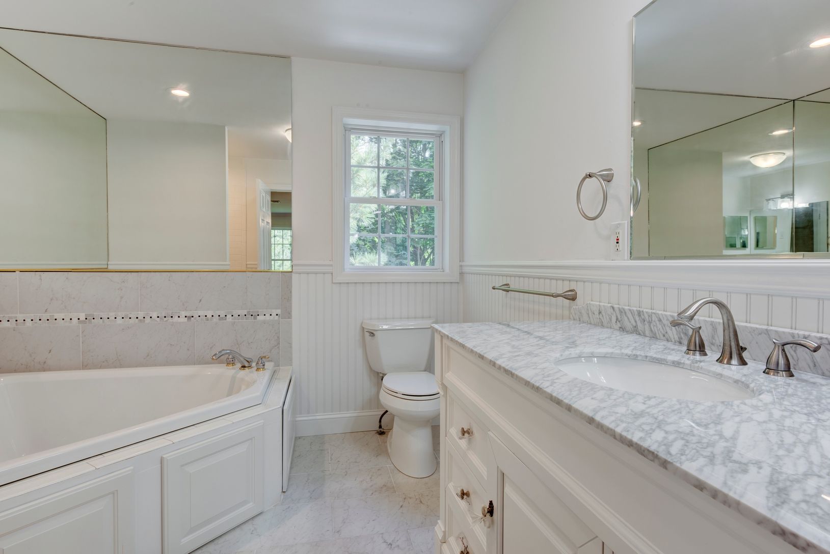 Recently updated and ready for immediate occupancy in Westhampton. Brand new wood floors throughout, Carrera marble eat-in kitchen, great room with fireplace, dining room and living room, powder room on the first floor. Upper level has master suite, three additional bedrooms and bath, plus a guest suite with private bath and private entrance.. Add to this an 8' basement ceiling and two-car garage on almost 3/4 of an acre. Low taxes. 3,400 s
