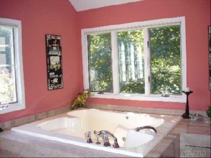 Hidden away but close to Westhampton Beach village is this five bedroom, four bath delightful family home situated on 2.70 acres. Spacious living room and large den face the heated gunite pool and expansive deck. A junior master suite and another bedroom and bath are located on the first floor as well as a new granite gourmet kitchen with dining area. The master suite with jacuzzi and two additional bedrooms are on the upper level. A private