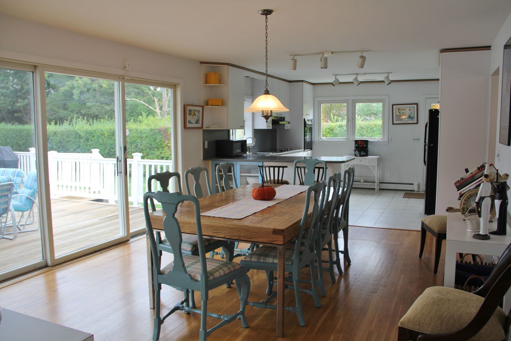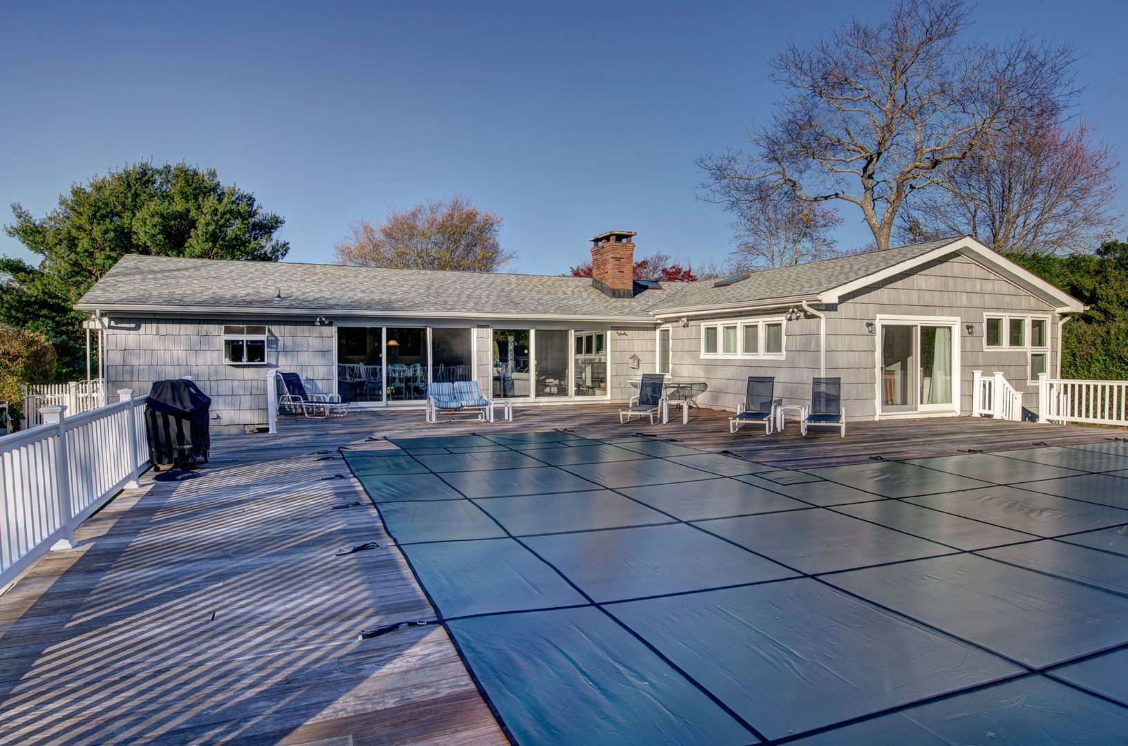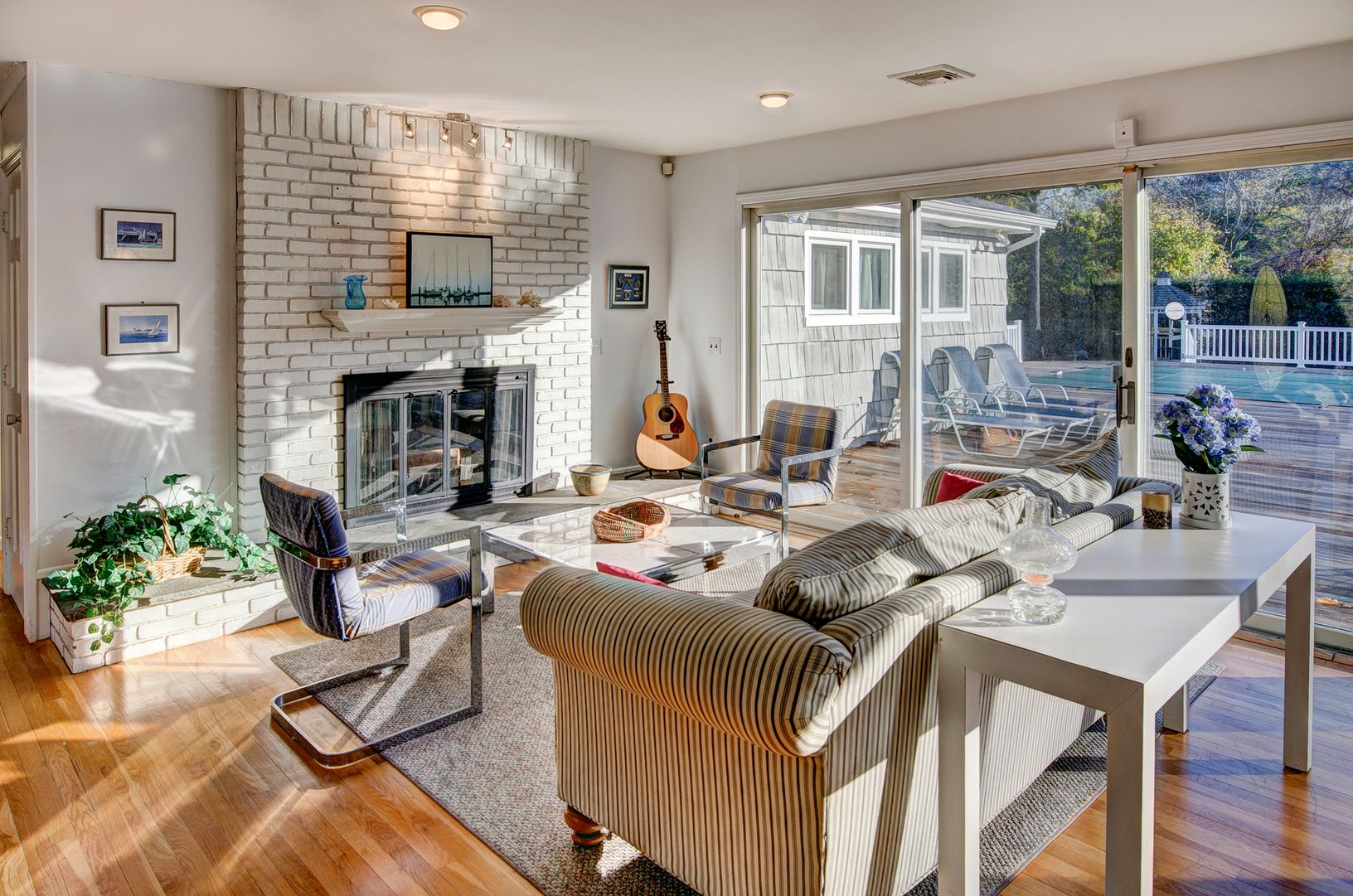 This newly renovated five bedroom, four bath contemporary home is situated south of the highway on a .67 acre parcel in Westhampton. Enhanced by having two master suites, it relates well to an extended family situation. The great room with fireplace and dining area face the expansive deck and oversized pool. Plenty of grounds for sports activities. Finished basement with full bath, den area and space for ping pong. Perfect for summer ente